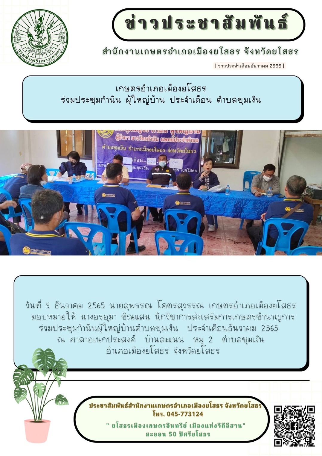 เกษตรอำเอเมืองยโสธร ร่วมประชุมกำนัน ผู้ใหญ่บ้าน ตำบลขุมเงิน
