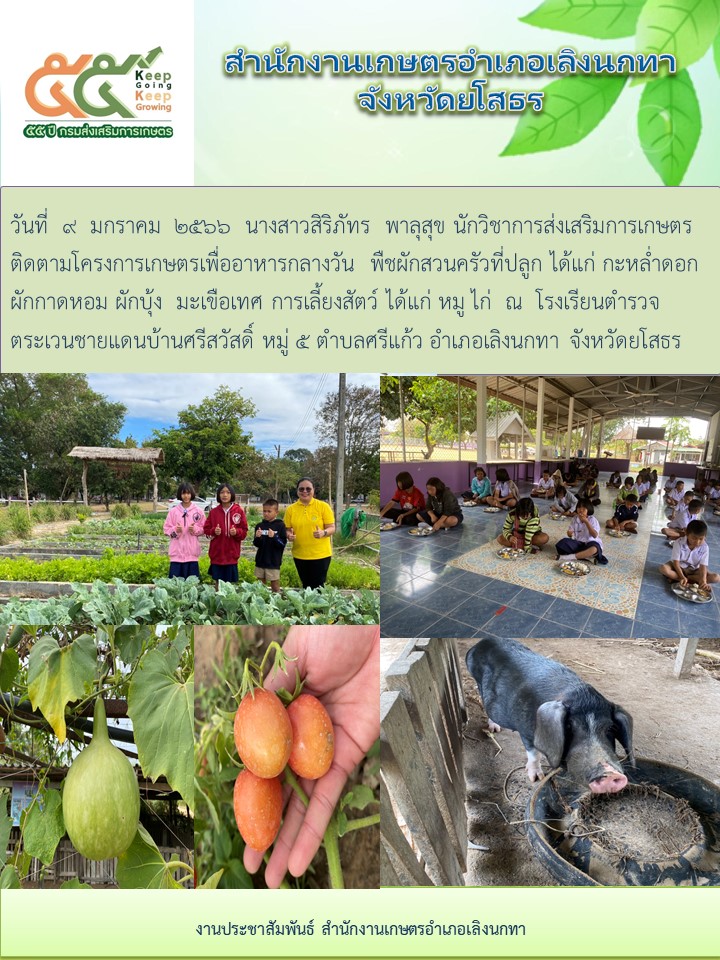 เกษตรอำเภอเลิงนกทา ติดตามโครงการเกษตรเพื่ออาหารกลางวัน