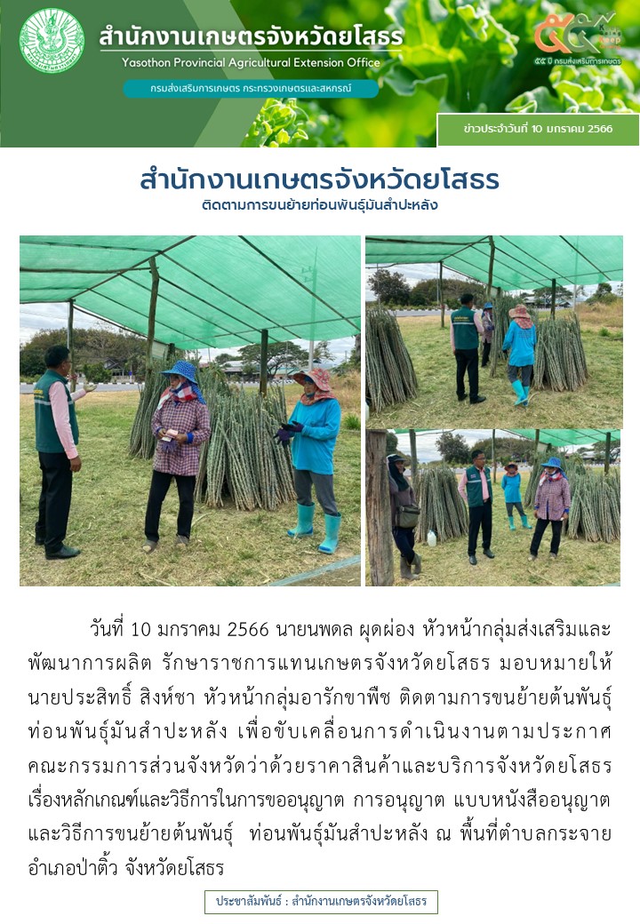 เกษตรจังหวัดยโสธร ติดตามการขนย้านท่อนพันธุ์มันสำปะหลัง