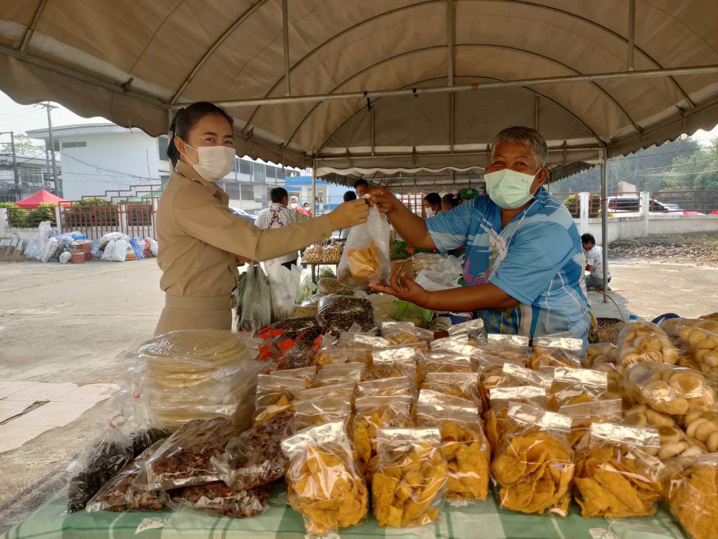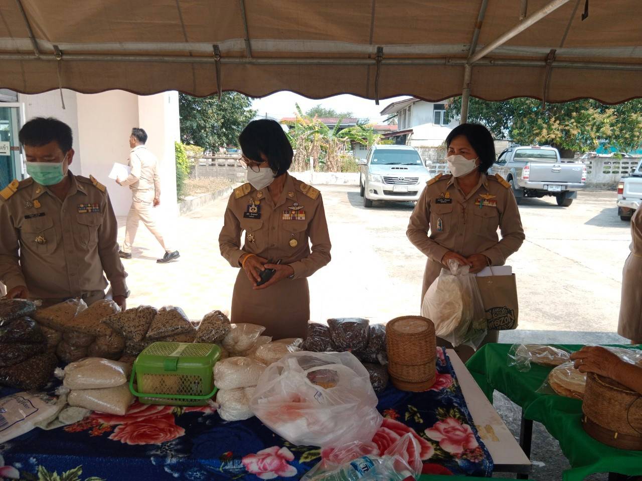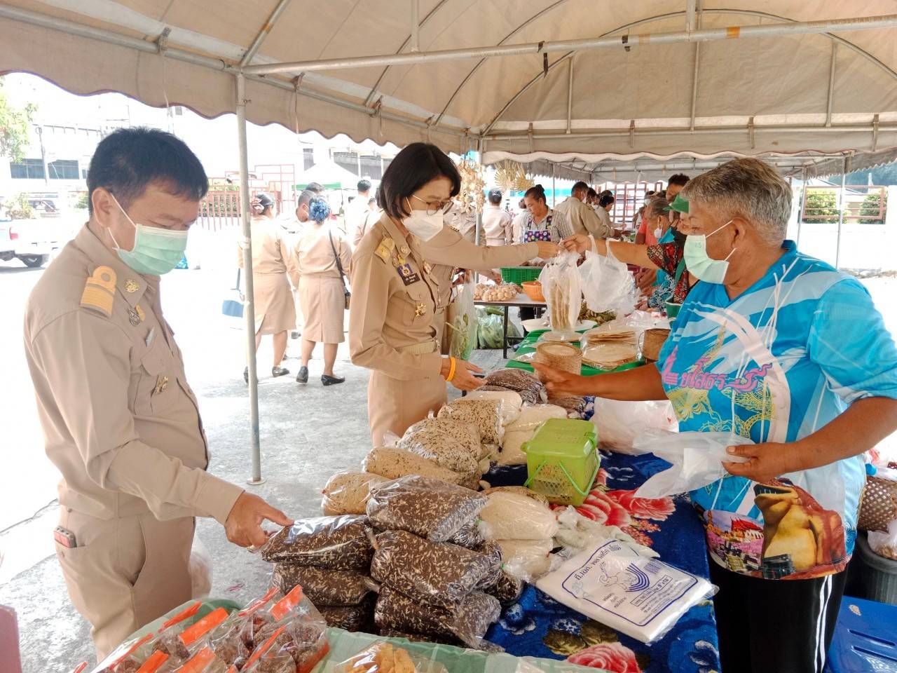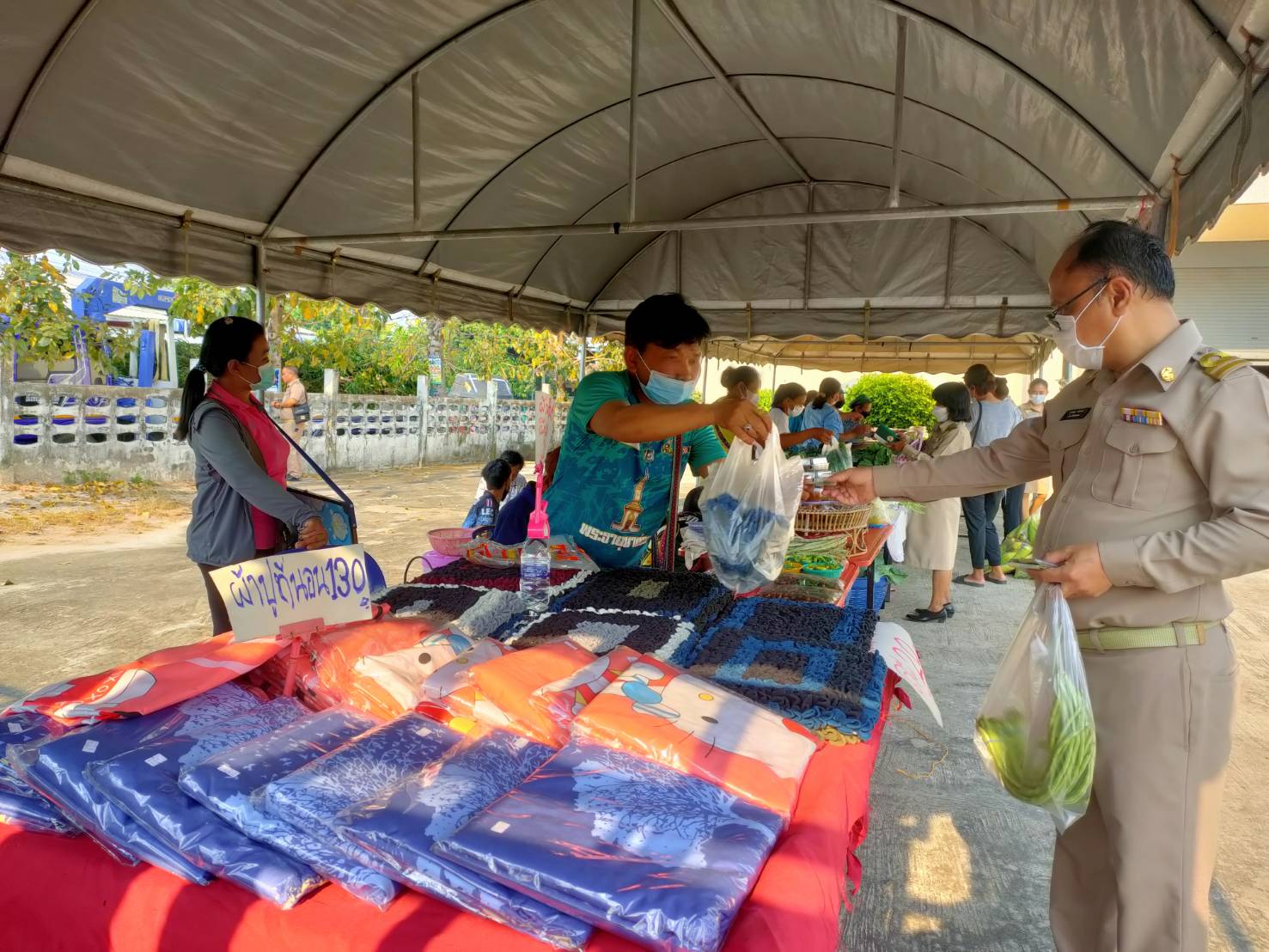 วันที่ 9 ก.พ. 2566 (14:47 น.)- ตามที่นางยุพิน ภัทรกุลพงศ์ นายอำเภอคำเขื่อนแก้ว ได้มีนโยบายช่วยเหลือเกษตรกร/กลุ่มโอทอป โดยเพิ่มช่องทางการตลาดและจัดสถานที่อำนวยความสะดวกในการขายสินค้าในวันประชุมกำนัน ผู้ใหญ่บ้าน ฯลฯ เป็นประจำทุกเดือน ณ บริเวณลานหน้าหอประชุม ๑๐๐ ปี อำเภอคำเขื่อนแก้ว จังหวัดยโสธร สำหรับวันที่ ๗ กุมภาพันธ์ ๒๕๖๖ หัวหน้าส่วนราชการ กำนัน ผู้ใหญ่บ้าน ฯลฯ ได้ร่วมอุดหนุนสินค้า โดยมียอดจำหน่ายสินค้า รวมทั้งสิ้น ๑๕,๐๕๐ บาท ทั้งนี้ ได้ปฏิบัติตามมาตรการป้องกันและควบคุมโรคติดเชื้อไวรัสโคโรนา 2019 (โควิด-19) โดยเคร่งครัด