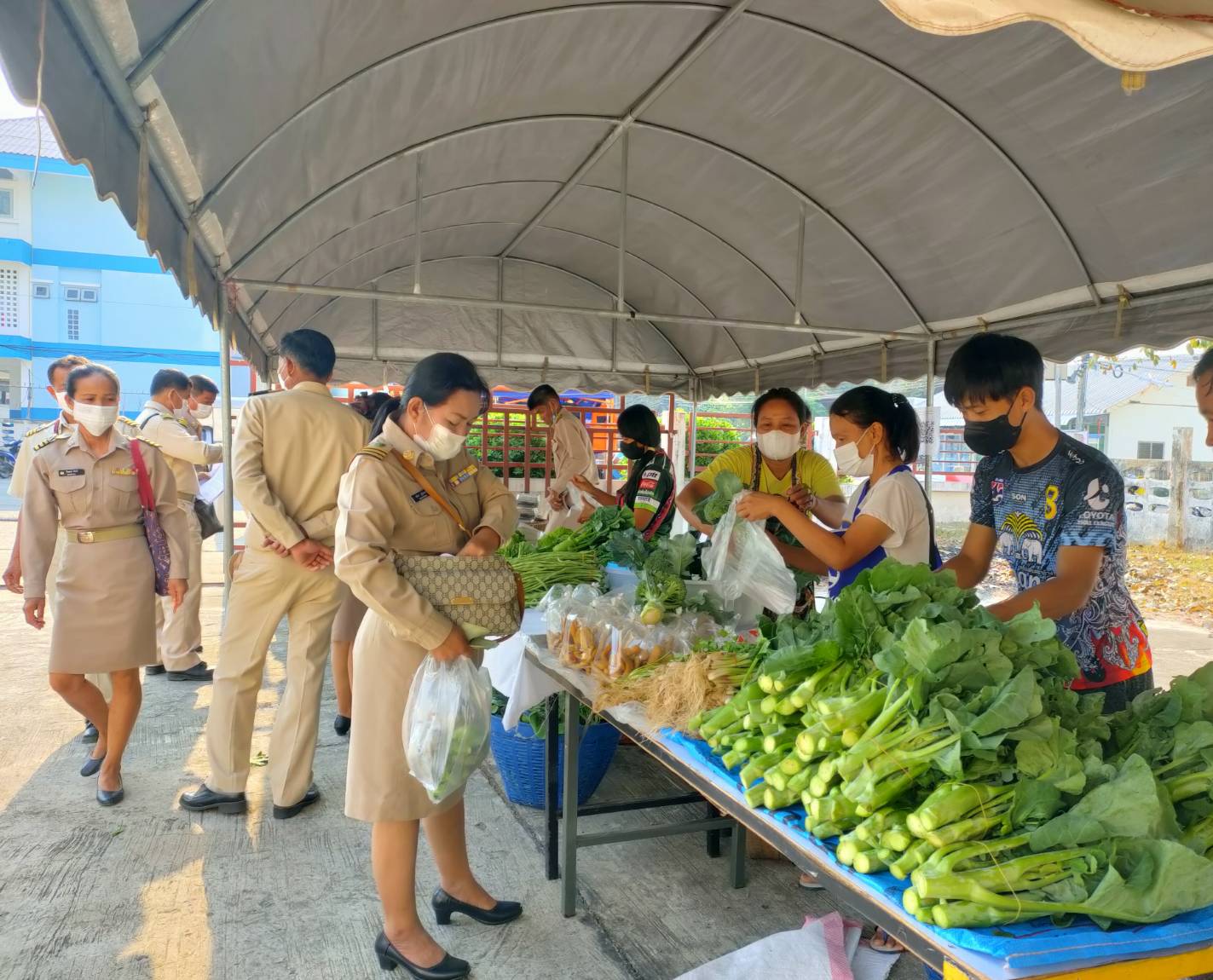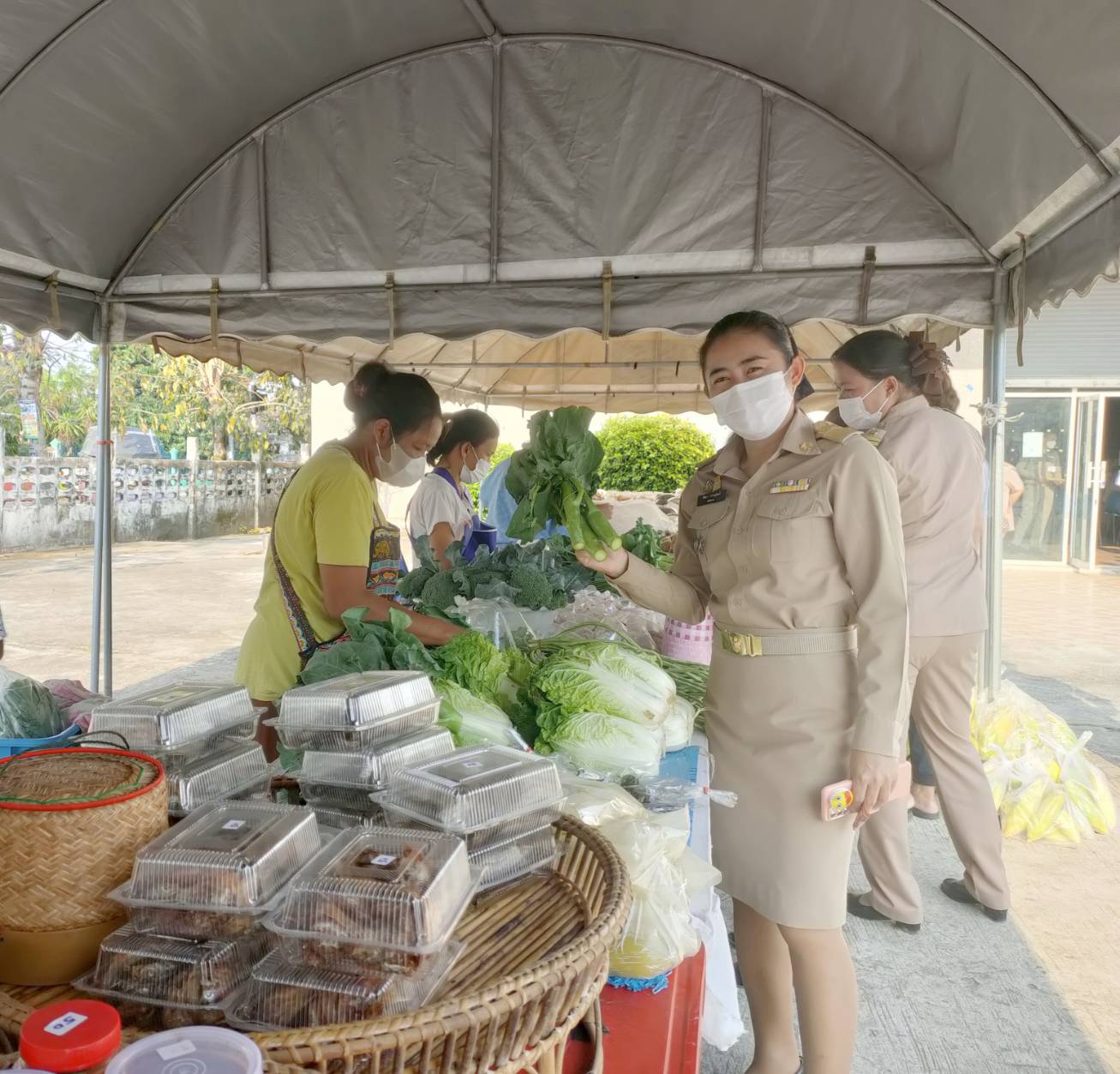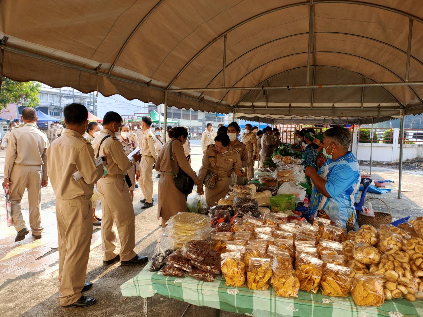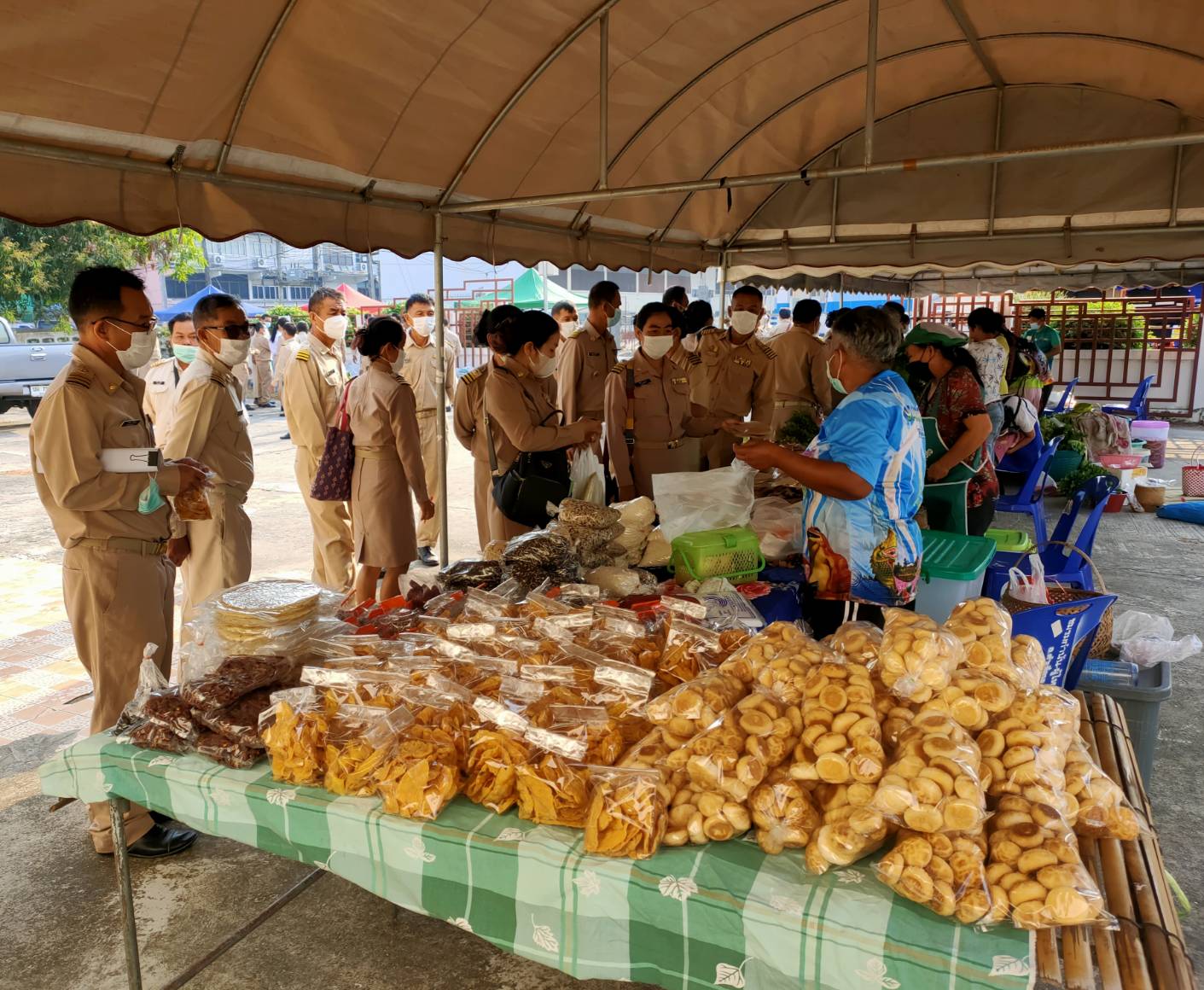 วันที่ 9 ก.พ. 2566 (14:47 น.)- ตามที่นางยุพิน ภัทรกุลพงศ์ นายอำเภอคำเขื่อนแก้ว ได้มีนโยบายช่วยเหลือเกษตรกร/กลุ่มโอทอป โดยเพิ่มช่องทางการตลาดและจัดสถานที่อำนวยความสะดวกในการขายสินค้าในวันประชุมกำนัน ผู้ใหญ่บ้าน ฯลฯ เป็นประจำทุกเดือน ณ บริเวณลานหน้าหอประชุม ๑๐๐ ปี อำเภอคำเขื่อนแก้ว จังหวัดยโสธร สำหรับวันที่ ๗ กุมภาพันธ์ ๒๕๖๖ หัวหน้าส่วนราชการ กำนัน ผู้ใหญ่บ้าน ฯลฯ ได้ร่วมอุดหนุนสินค้า โดยมียอดจำหน่ายสินค้า รวมทั้งสิ้น ๑๕,๐๕๐ บาท ทั้งนี้ ได้ปฏิบัติตามมาตรการป้องกันและควบคุมโรคติดเชื้อไวรัสโคโรนา 2019 (โควิด-19) โดยเคร่งครัด