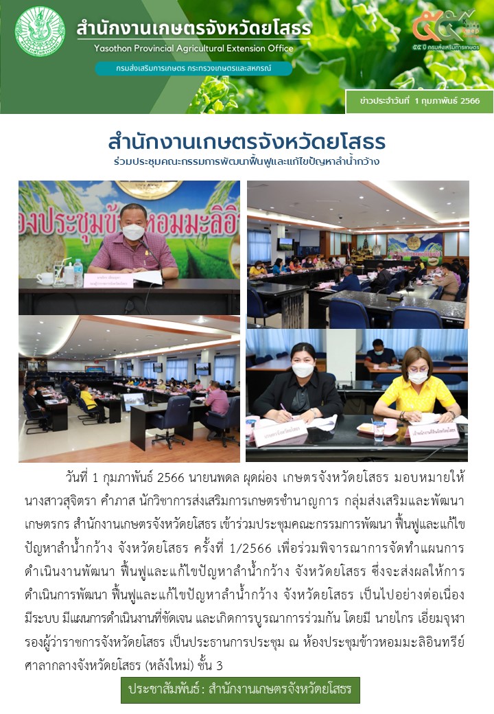 เกษตรจังหวัดยโสธร ร่วมประชุมคณะกรรมการพัฒนาฟื้นฟูและแก้ไขปัญหาลำน้ำกว้าง