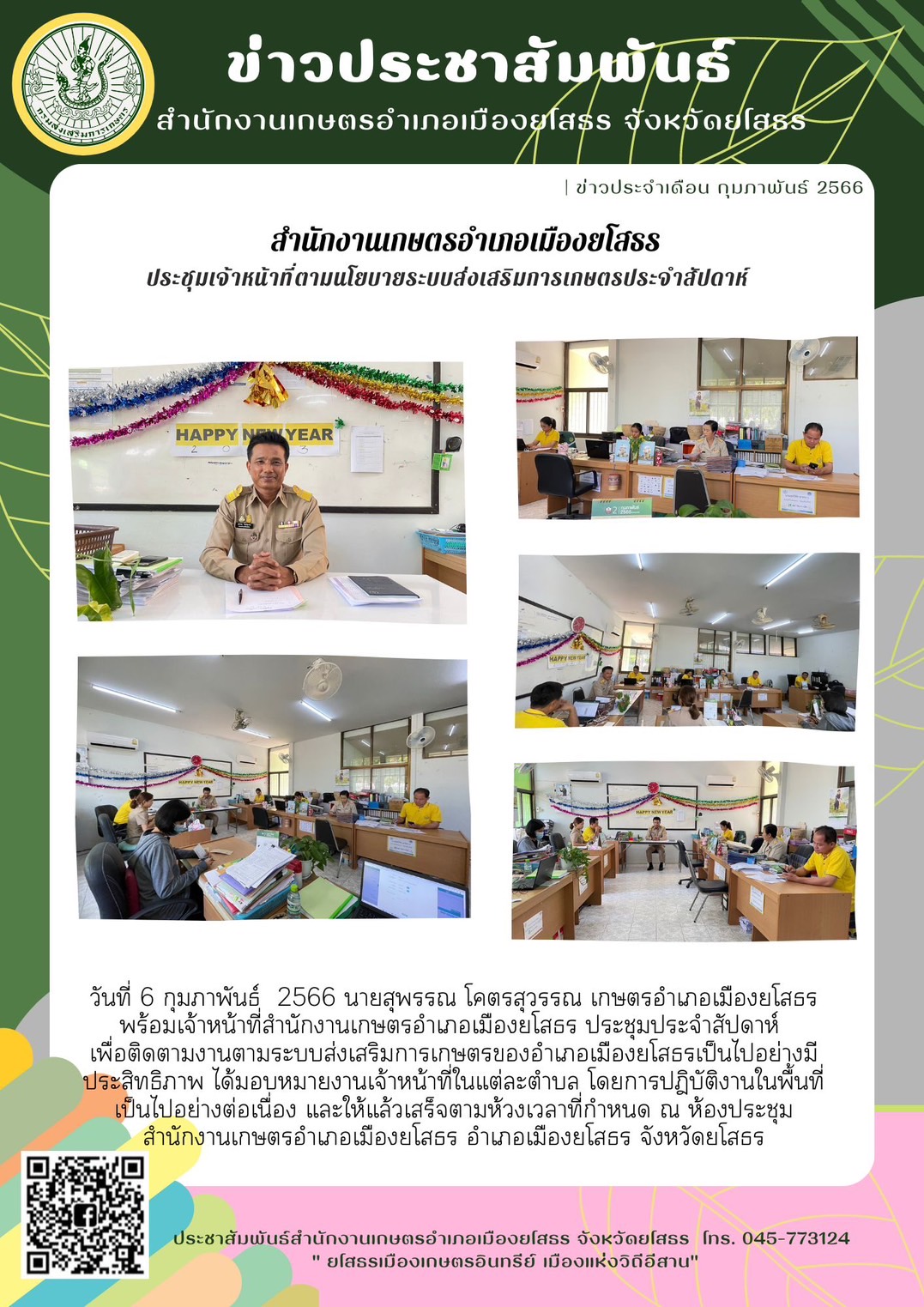 เกษตรอำเภอเมืองยโสธร ประชุมเจ้าหน้าที่ตามระบบส่งเสริมการเกษตร