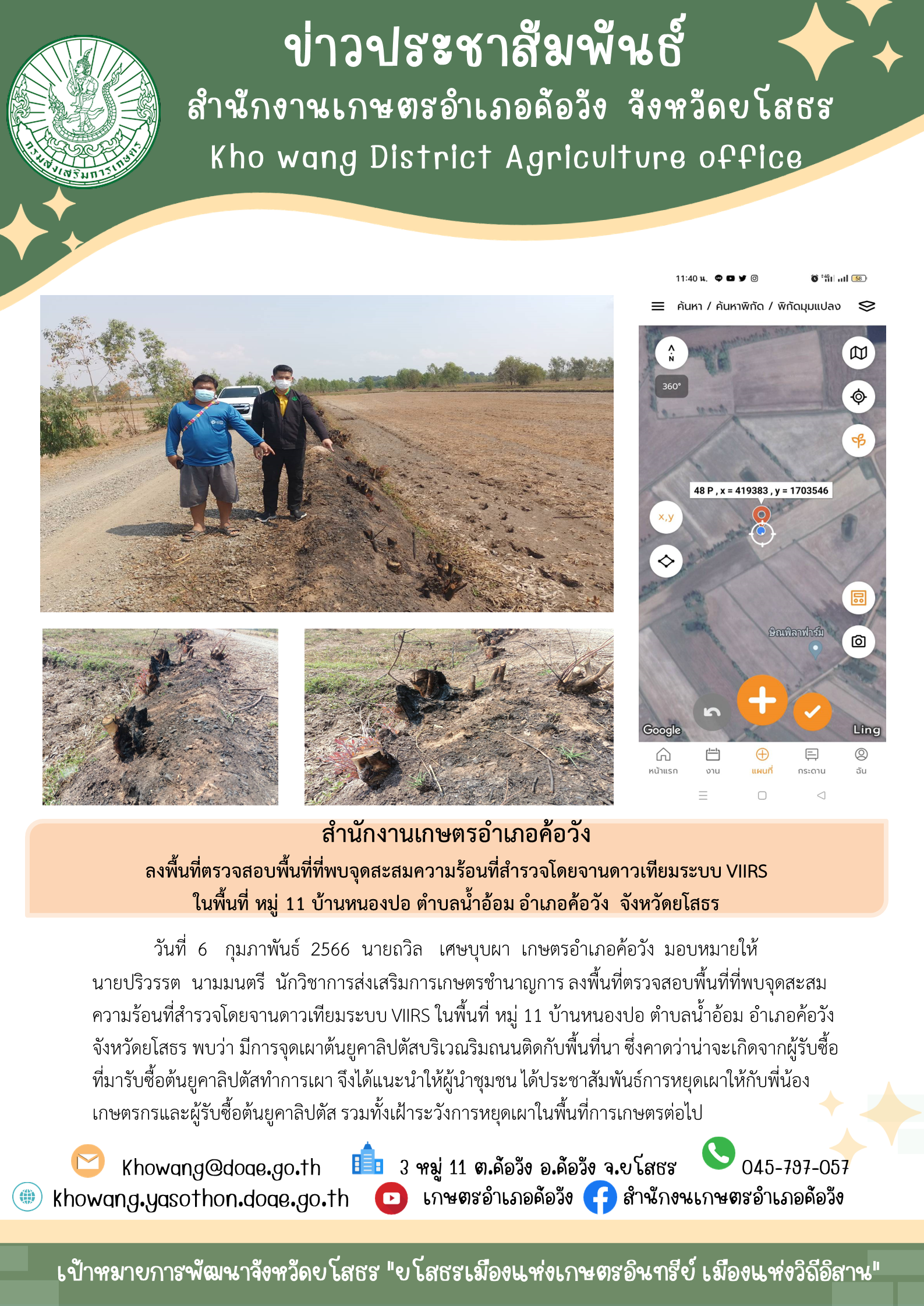 เกษตรอำเภอค้อวัง ลงพื้นที่ตรวจสอบพื้นที่ที่พบจุดสะสมความร้อน