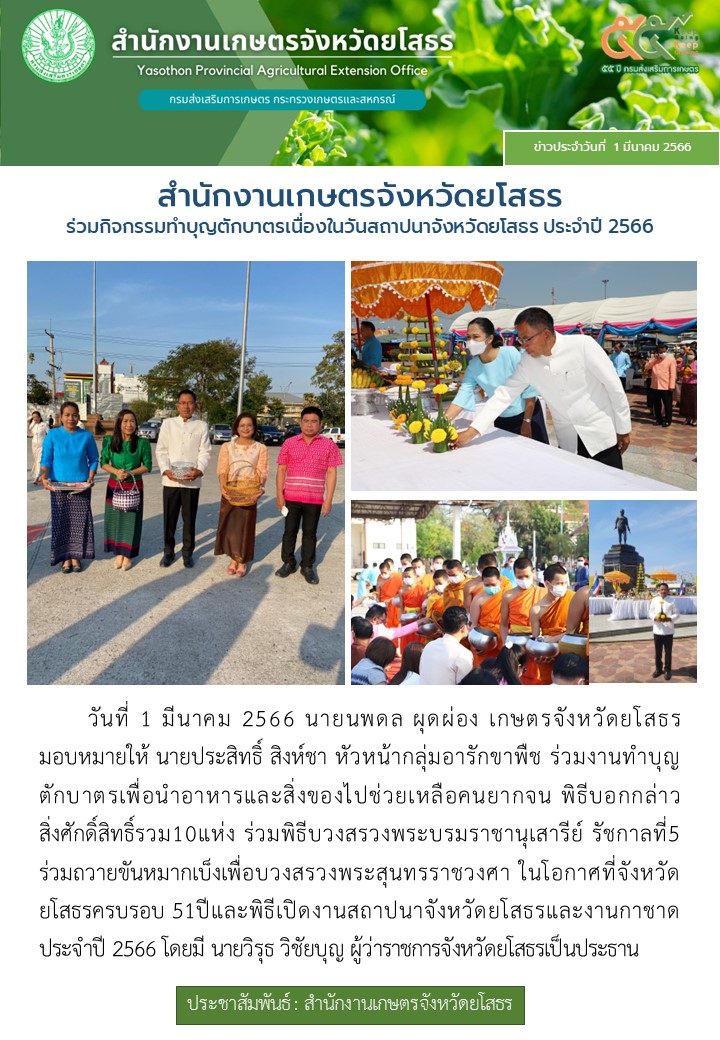 เกษตรจังหวัดยโสธร ร่วมกิจกรรมตักรบาตรเนื่องในวันสถาปนาจังหวัดยโสธร