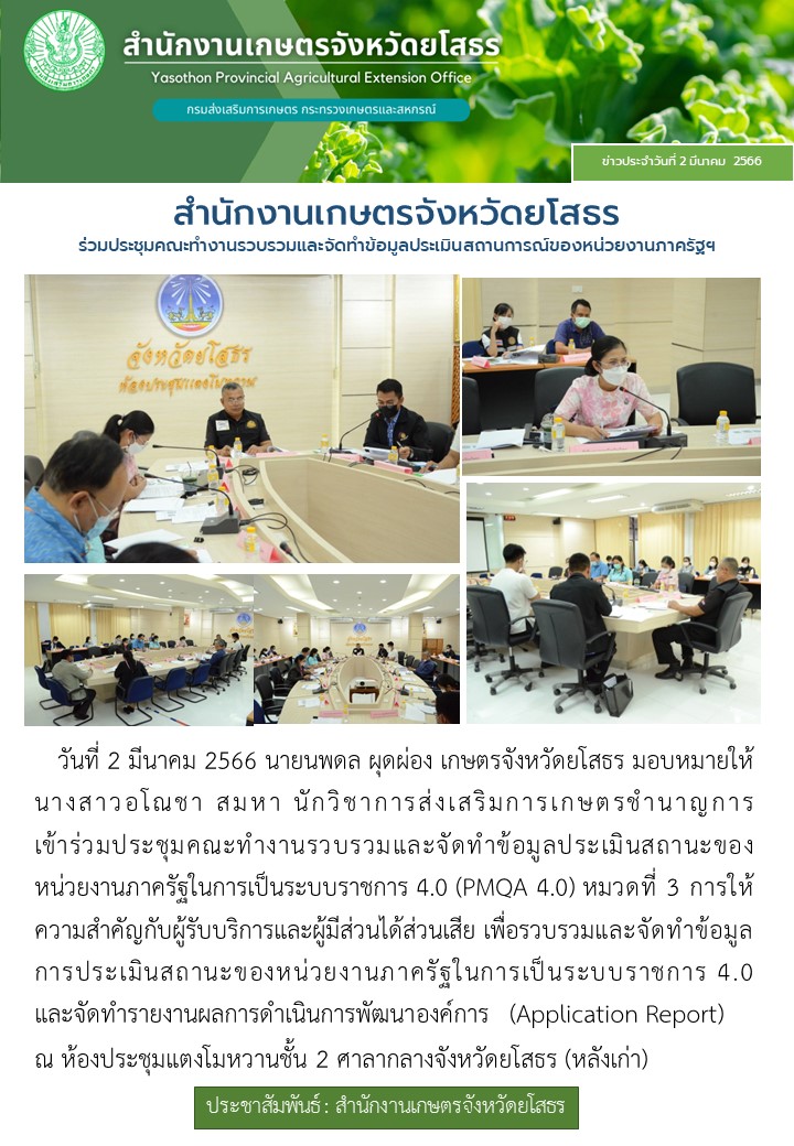เกษตรจังหวัดยโสธร ร่วมประชุมคณะทำงานรวบรวมและจัดทำข้อมูลประเมินสถานการของหน่วยงานภาครัฐ