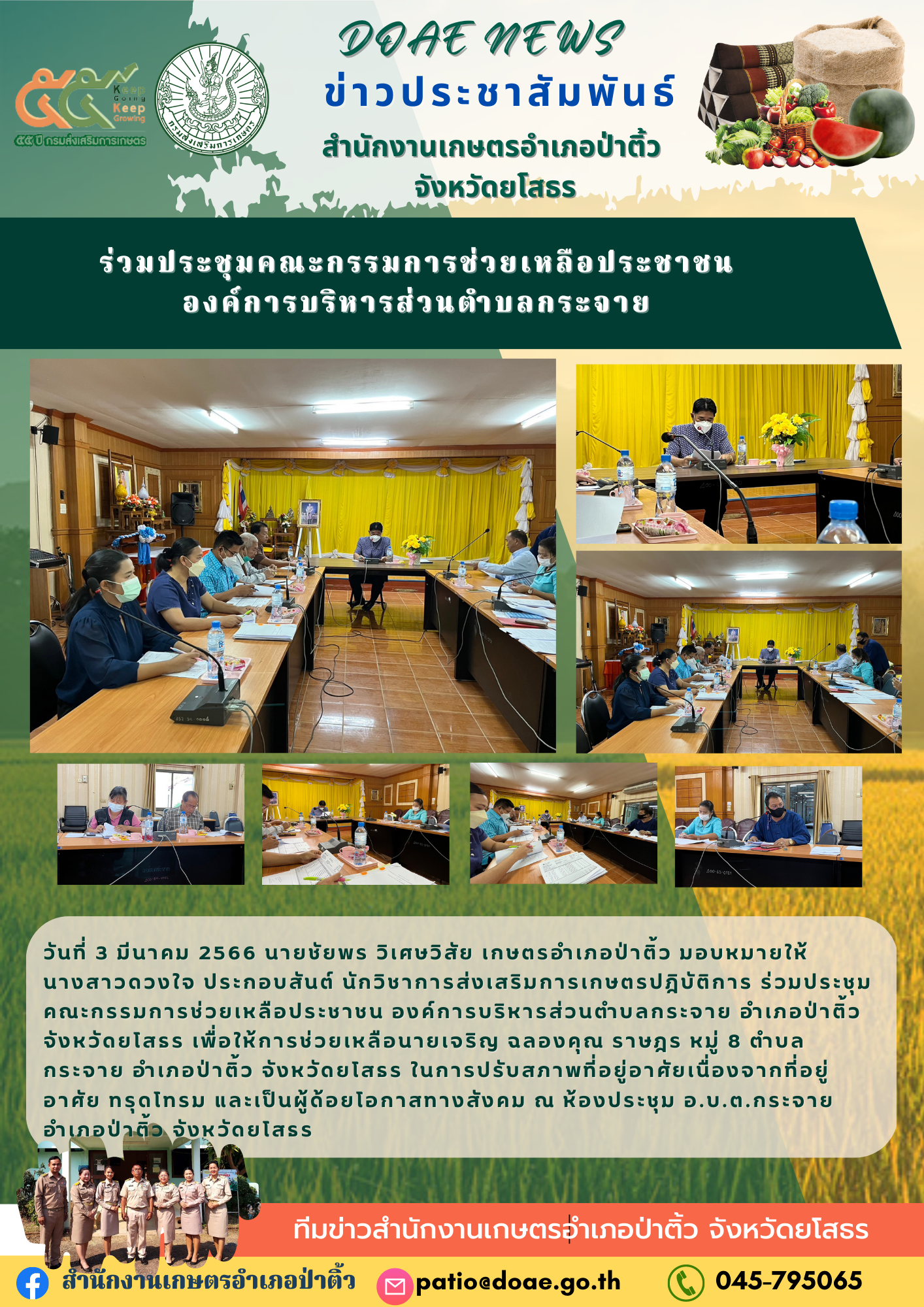 เกษตรอำเภอป่าติ้ว ร่วมประชุมคณะกรรมการช่วยเหลือประชาชนองคืการบริหารส่วนตำบลกระจาย