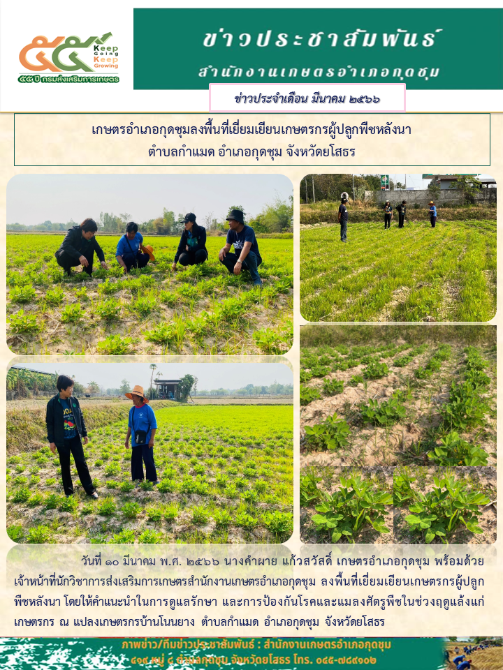 เกษตรอำเภอกุดชุม ลงพื้นที่เยี่ยมเยียนเกษตรกรผู้ปลูกพืชหลังนา