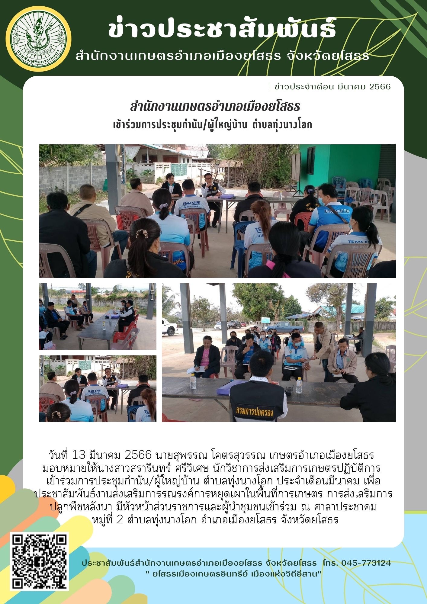 เกษตรอำเภอเมืองยโสธร เข้าร่วมการประชุมกำนัน ผู้ใหญ่บ้าน
