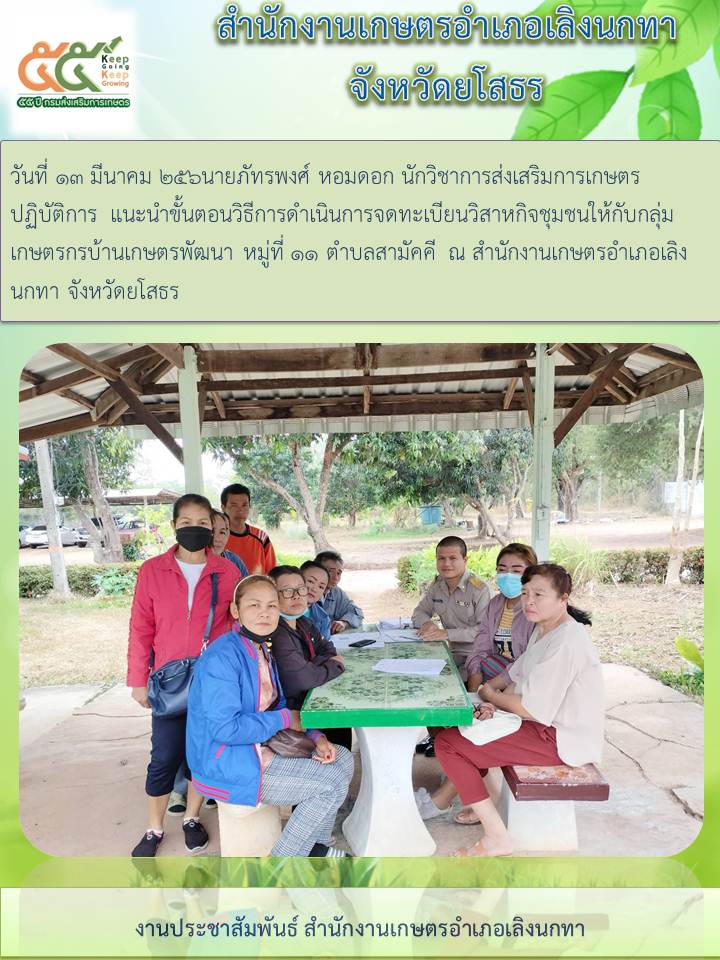 เกษตรอำเภอเลิงนกทา แนะนำขั้นตอนการจดทะเบียนวิสาหกิจชุมชน