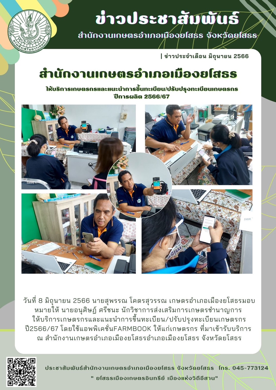 เกษตรอำเภอเมืองยโสธร ให้บริการเกษตรกรและให้คำแนะนำการขึ้นทะเบียนเกษตกร