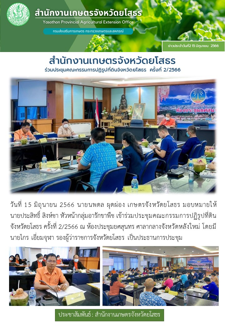 เกษตรจังหวัดยโสธร ร่วมประชุมคณะกรรมการปฏิรูปที่ดินจังหวัดยโสธร ครั้งที่ 2/2566
