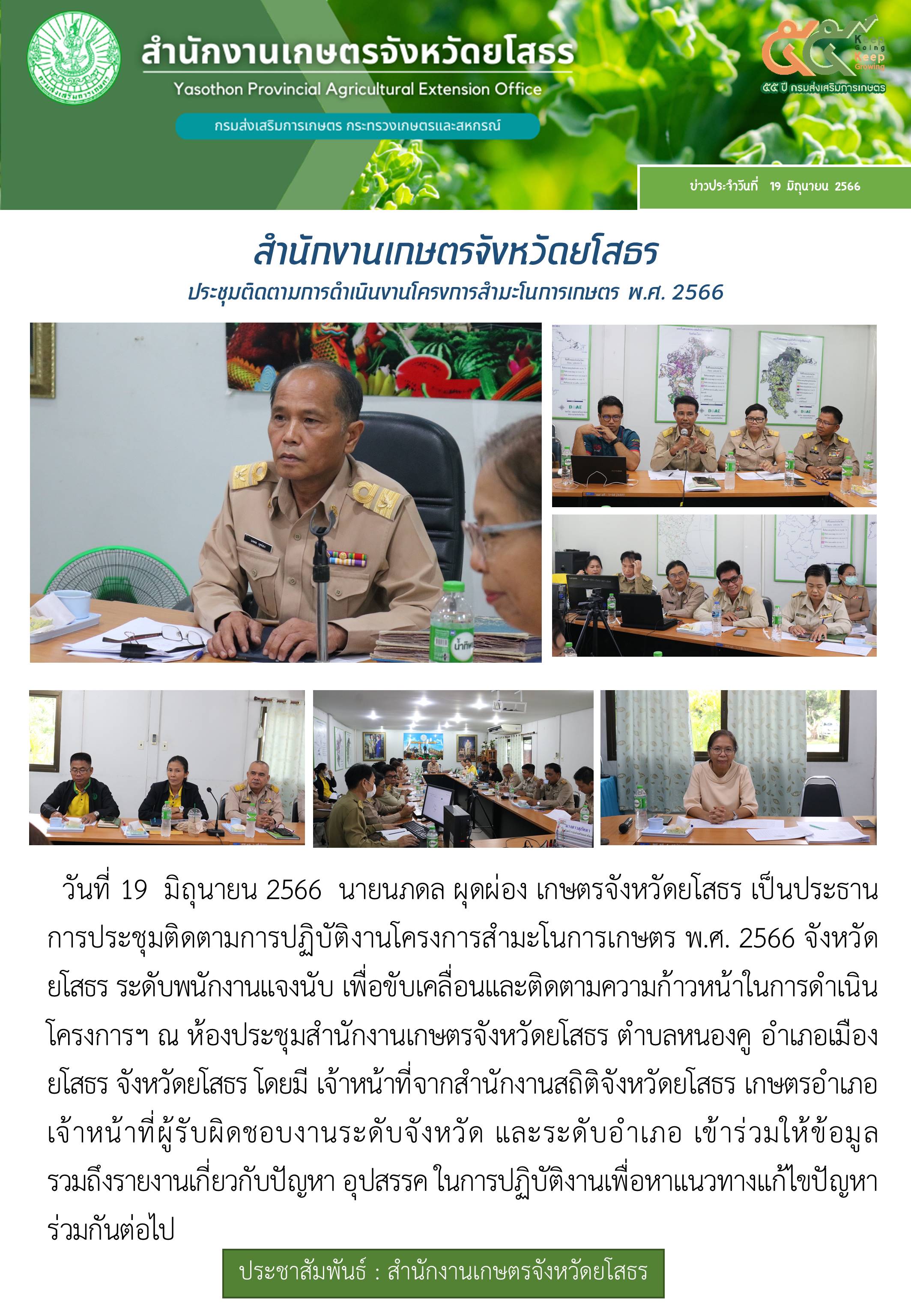 เกษตรจังหวัดยโสธร ติดตามการดำเนินงานโครงการสำมะโนการเกษตร