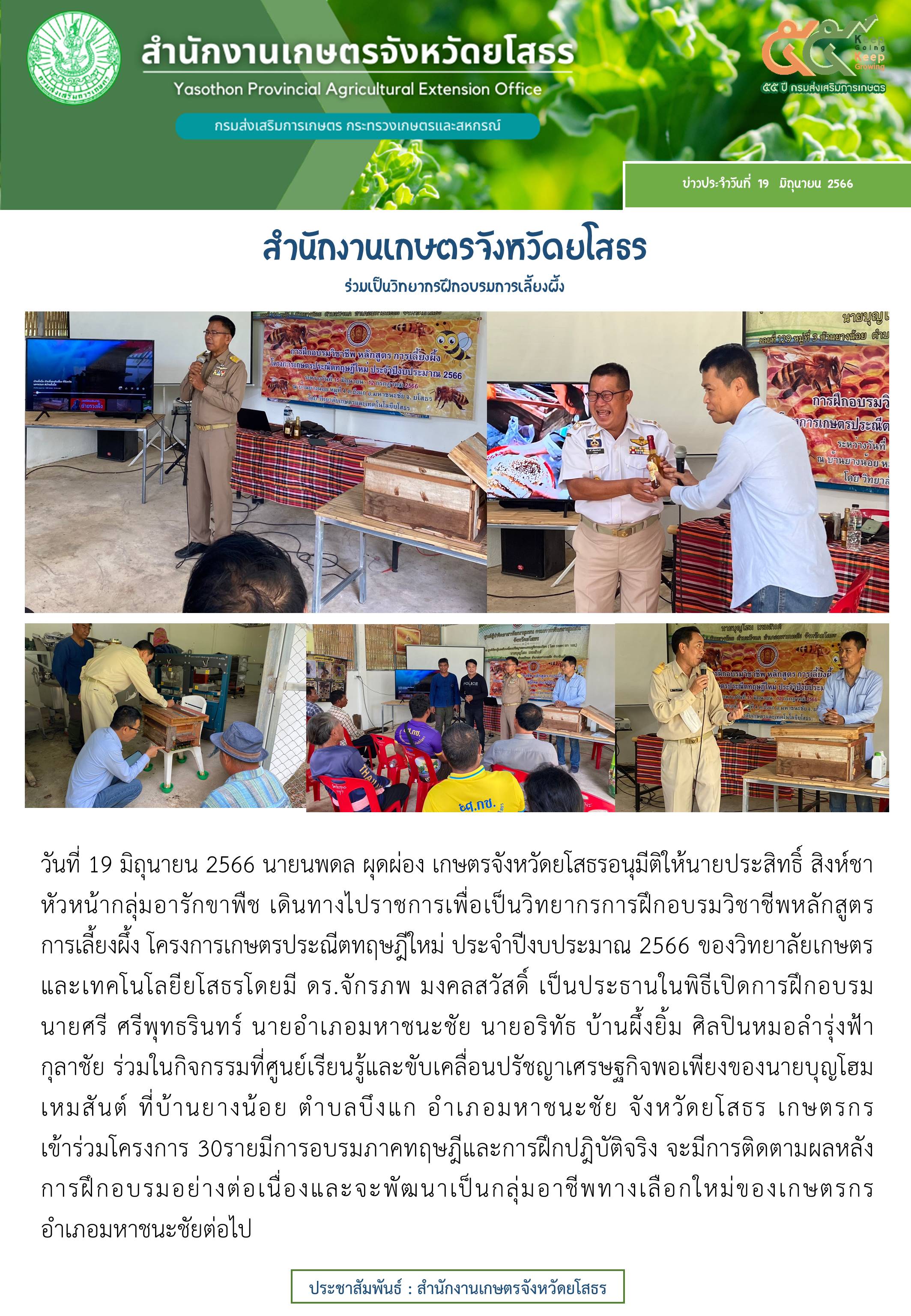 เกษตรจังหวัดยโสธร ร่วมเป็นวิทยากรฝึกอบรมการเลี้ยงผึ้ง