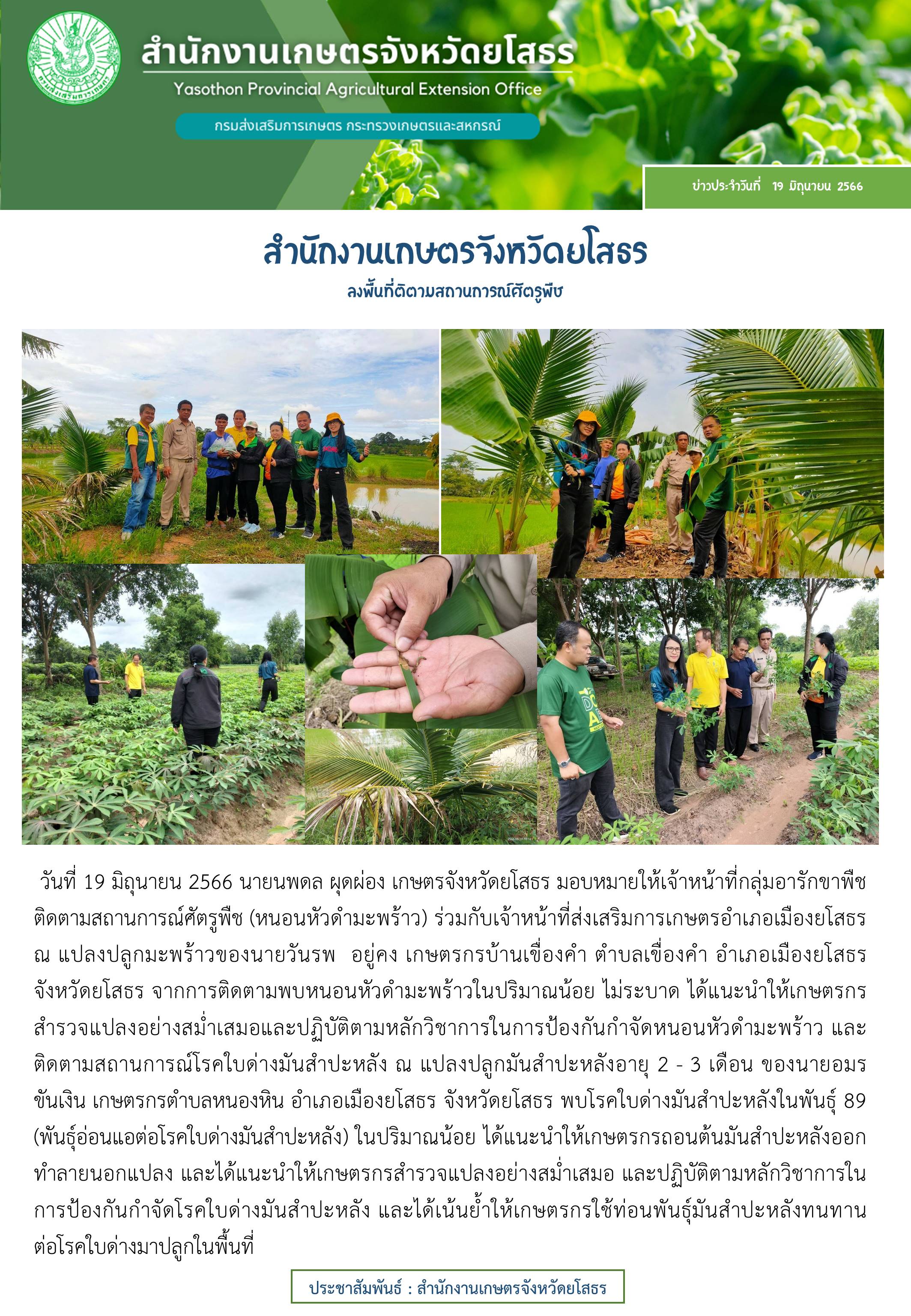เกษตรจังหวัดยโสธร ลงพื้นที่ติดตามสถานการณ์ศัตรูพืช