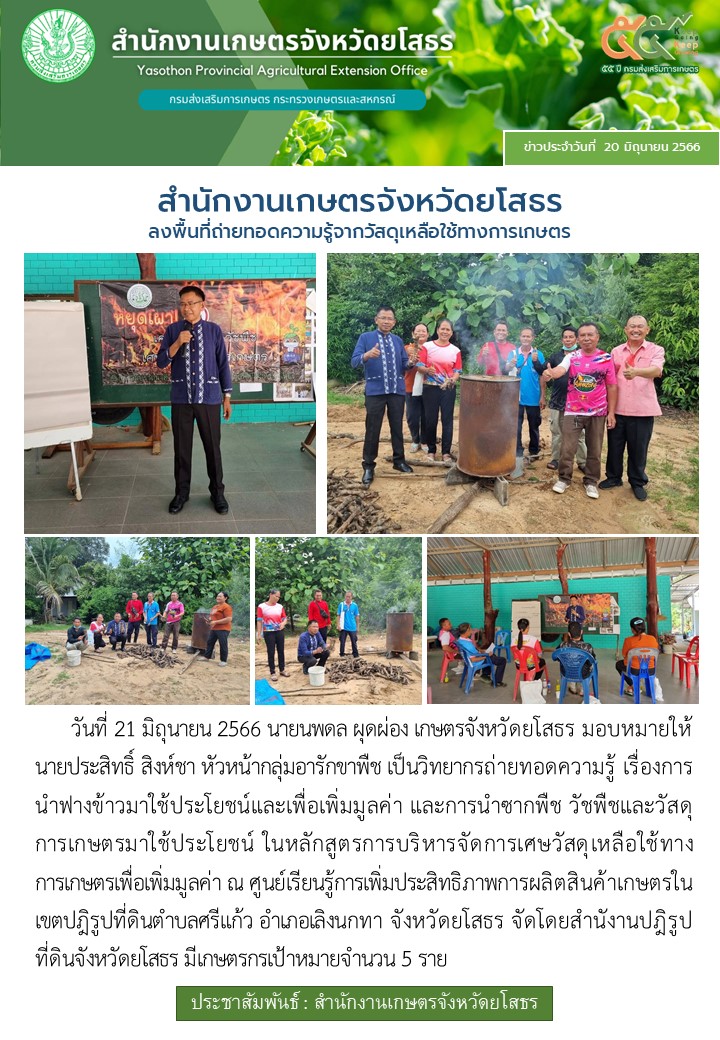 เกษตรจังหวัดยโสธร ลงพื้นที่ถ่ายทอดความรู้จากวัสดุเหลือใช้ทางการเกษตร