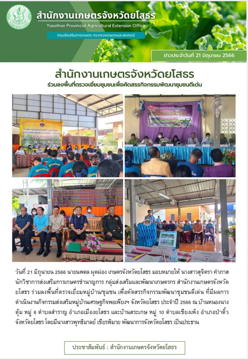 เกษตรจังหวัดยโสธร ร่วมลงพื้นที่ตรวจเยี่ยมชุมชนเพื่อคัดสรรกิจกรรมพัฒนาชุมชนดีเด่น