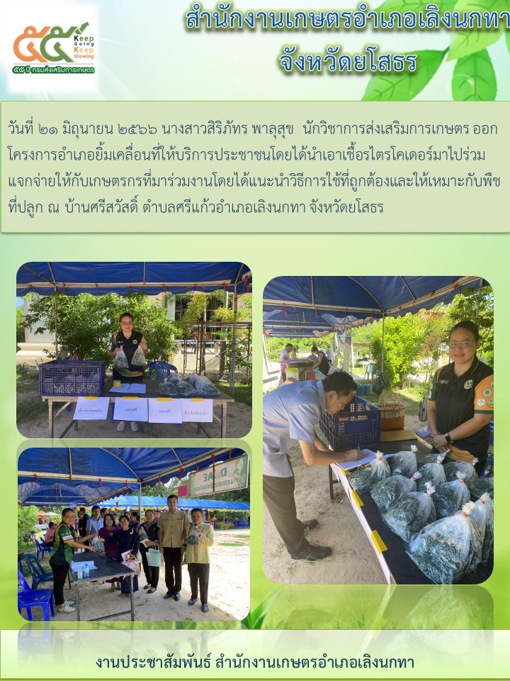 เกษตรอำเภอเลิงนกทา ให้บริการแจกเชื้อราไตรโคเดอร์มาให้กับประชาชน