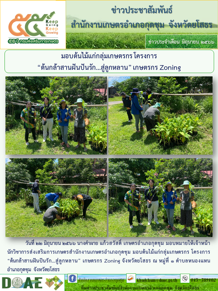 เกษตรอำเภอกุดชุม มอบต้นไม้แก่กลุ่มเกษตรกร โครงการต้นกล้าสานฝันปันรัก สู่ลุกหลาน เกษตรกร Zoning