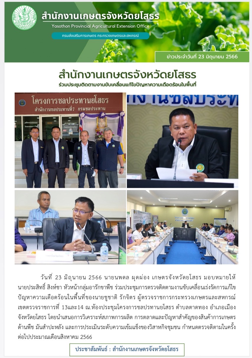 เกษตรจังหวัดยโสธร ร่วมประชุมติดตามงานขับเคลื่อนแก้ไขปัญหาความเดือดร้อนในพื้นที่