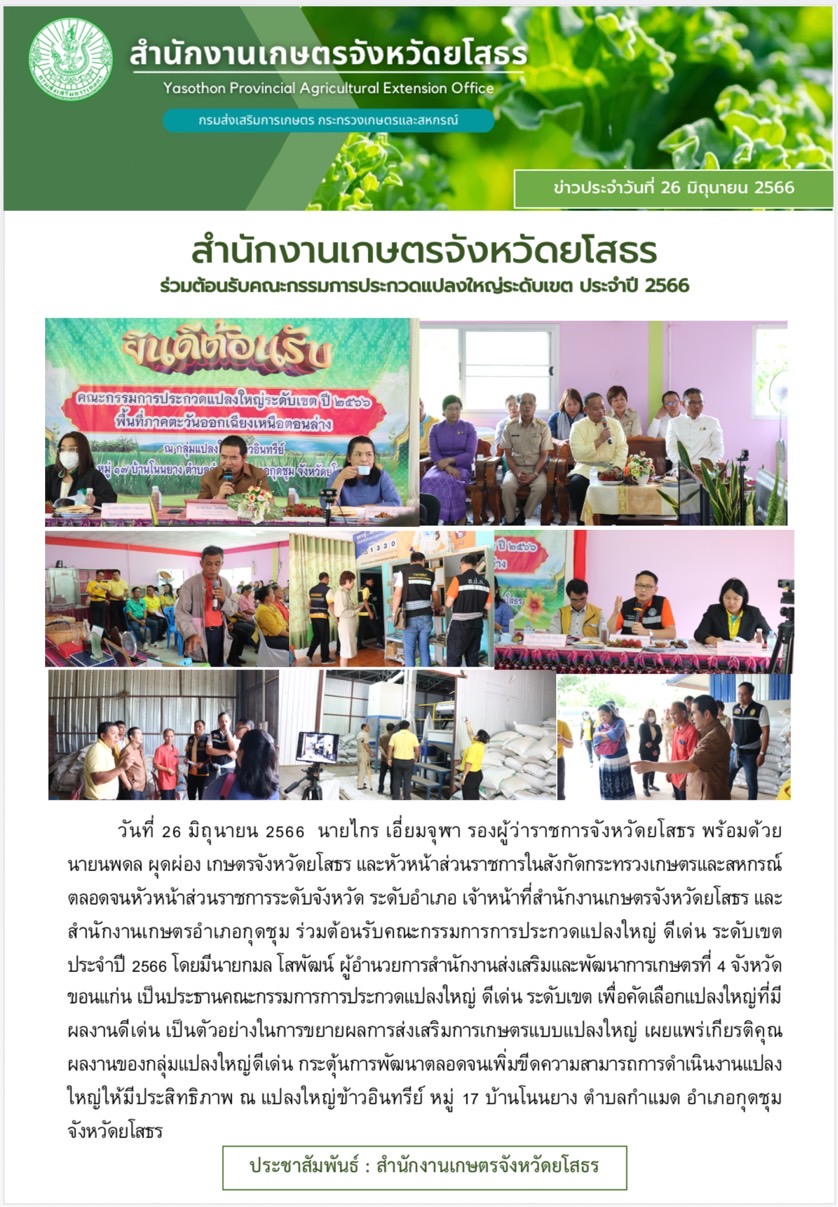 เกษตรจังหวัดยโสธร ร่วมต้อนรับคณะกรรมการประกวดแปลงใหญ่ระดับเขต ประจำปี 2566