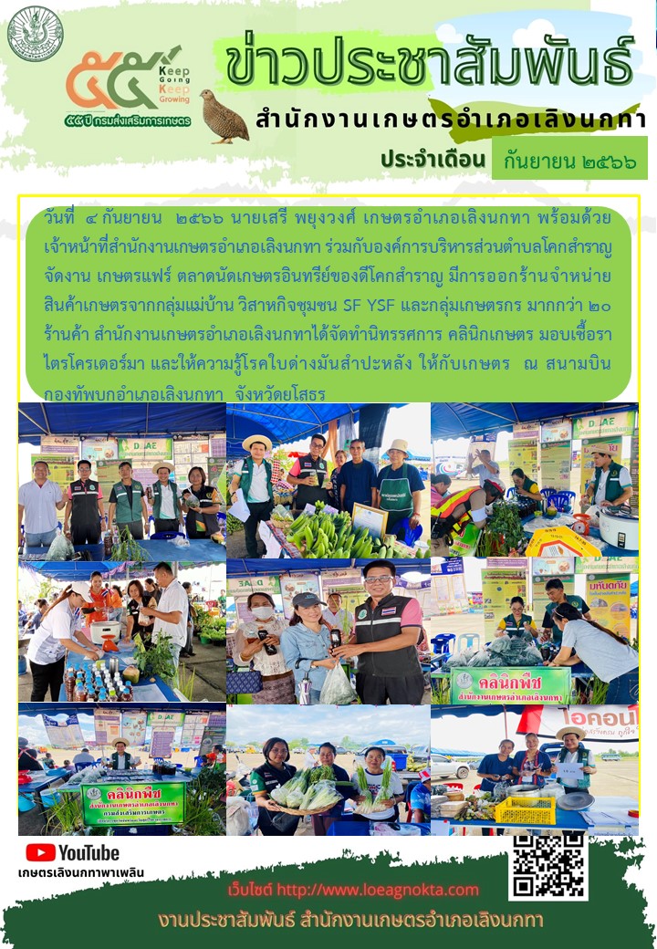 เกษตรอำเภอเลิงนกทา ร่วมกับองค์การบริหารส่วนตำบลโคกสำราญ จัดงานเกษตรแฟร์ ตลาดนัดเกษตรอินทรีย์ของดีโคกสำราญ
