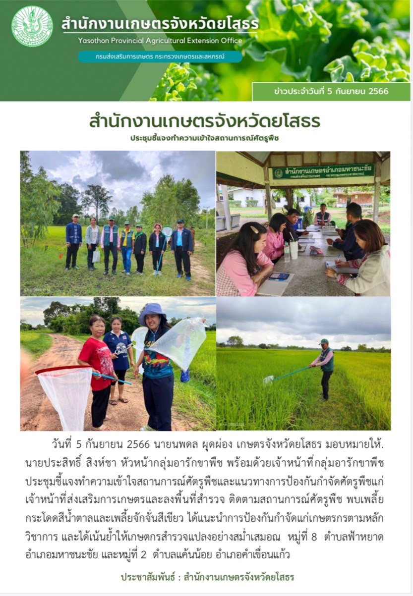 เกษตรจังหวัดยโสธร ประชุมชี้แจงทำความเข้าใจสถานการณ์ศัตรูพืช