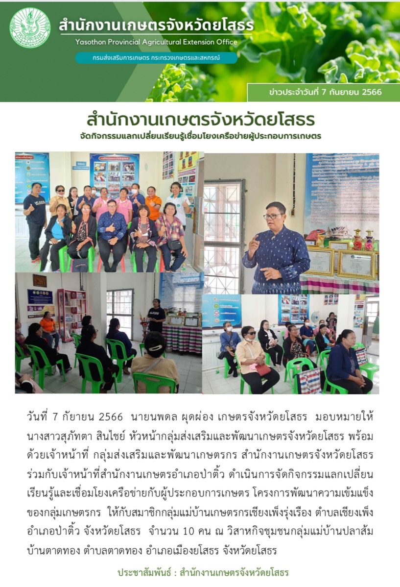 สำนักงานเกษตรจังหวัดยโสธร จัดกิจกรรมแลกเปลี่ยนเรียนรู้เชื่อมโยงเครือข่ายผู้ประกอบการเกษตร