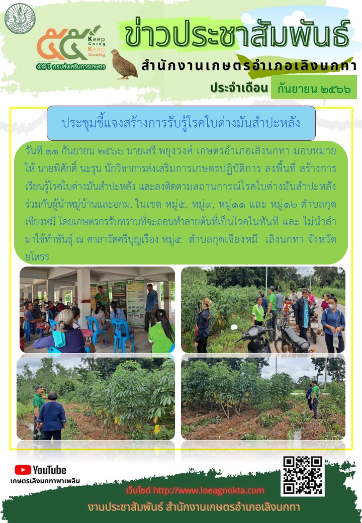 เกษตรอำเภอเลิงนกทา ประชุมชี้แจงสร้างการรับรู้โรคใบด่างมันสำปะหลัง
