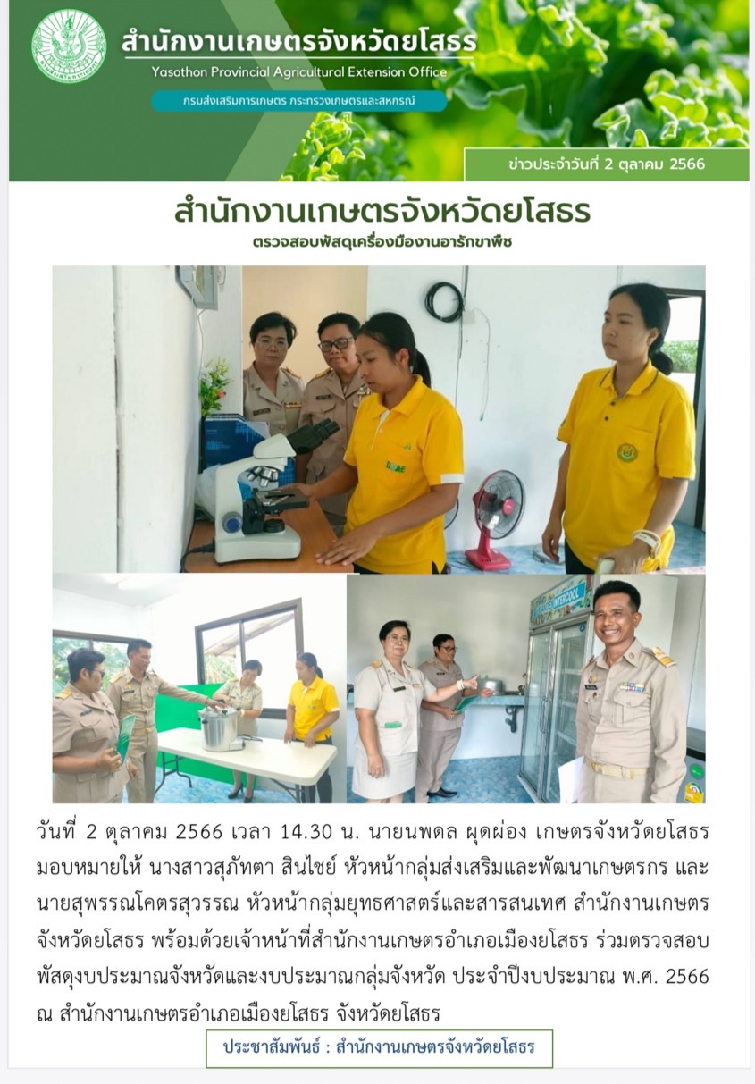 เกษตรจังหวัดยโสธร ตรวจสอบพัสดุเครื่องมืองานอารักขาพืช
