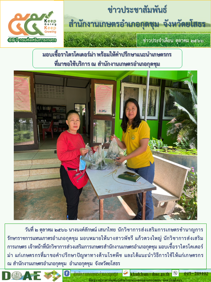 เกษตรอำเภอกุดชุม มอบเชื้อราไตรโคเดอร์มา พร้อมให้คำแนะนำเกษตรกรที่มาขอใช้บริการ