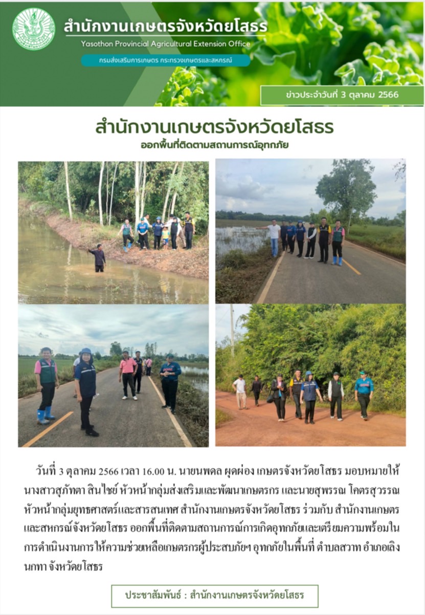 เกษตรจังหวัดยโสธร ออกพื้นที่ติดตามสถานการณฺ์อุทกภัย