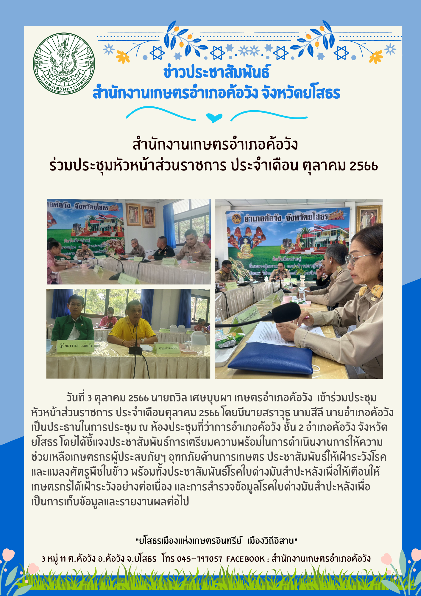 เกษตรอำเภอค้อวัง ร่วมประชุมหัวหน้าส่วนราชการ ประจำเดือนตุลาคม