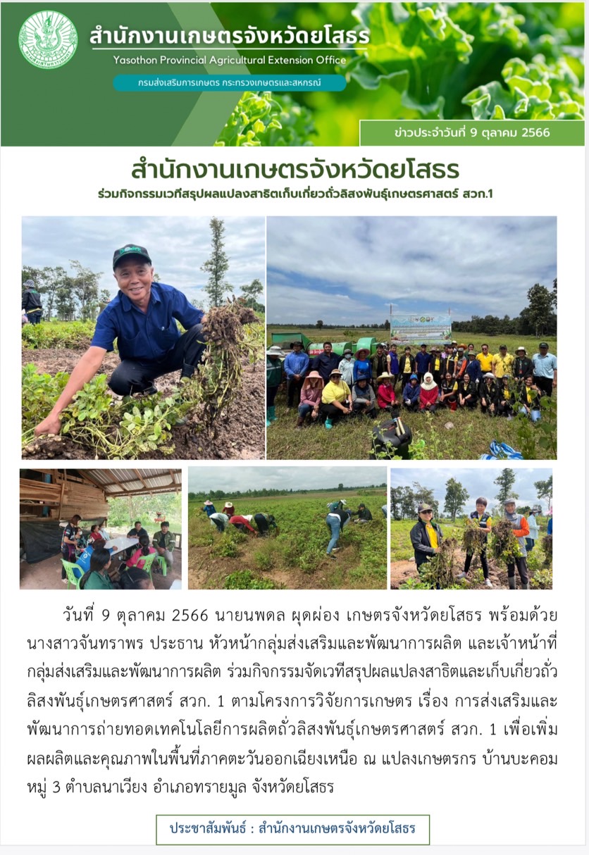 เกษตรจังหวัดยโสธร ร่วมเวทีสรุปผลแปลงสาธิตเก็บเกี่ยวถั่วลิสง