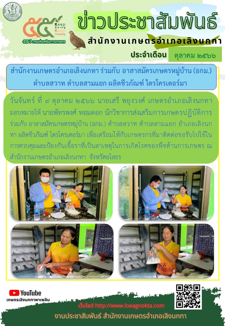 เกษตรอำเภอเลิงนกทา ผลิตเชื้อราไตรโครเดอร์มาเพื่อแจกจ่ายให้เกษตรกร