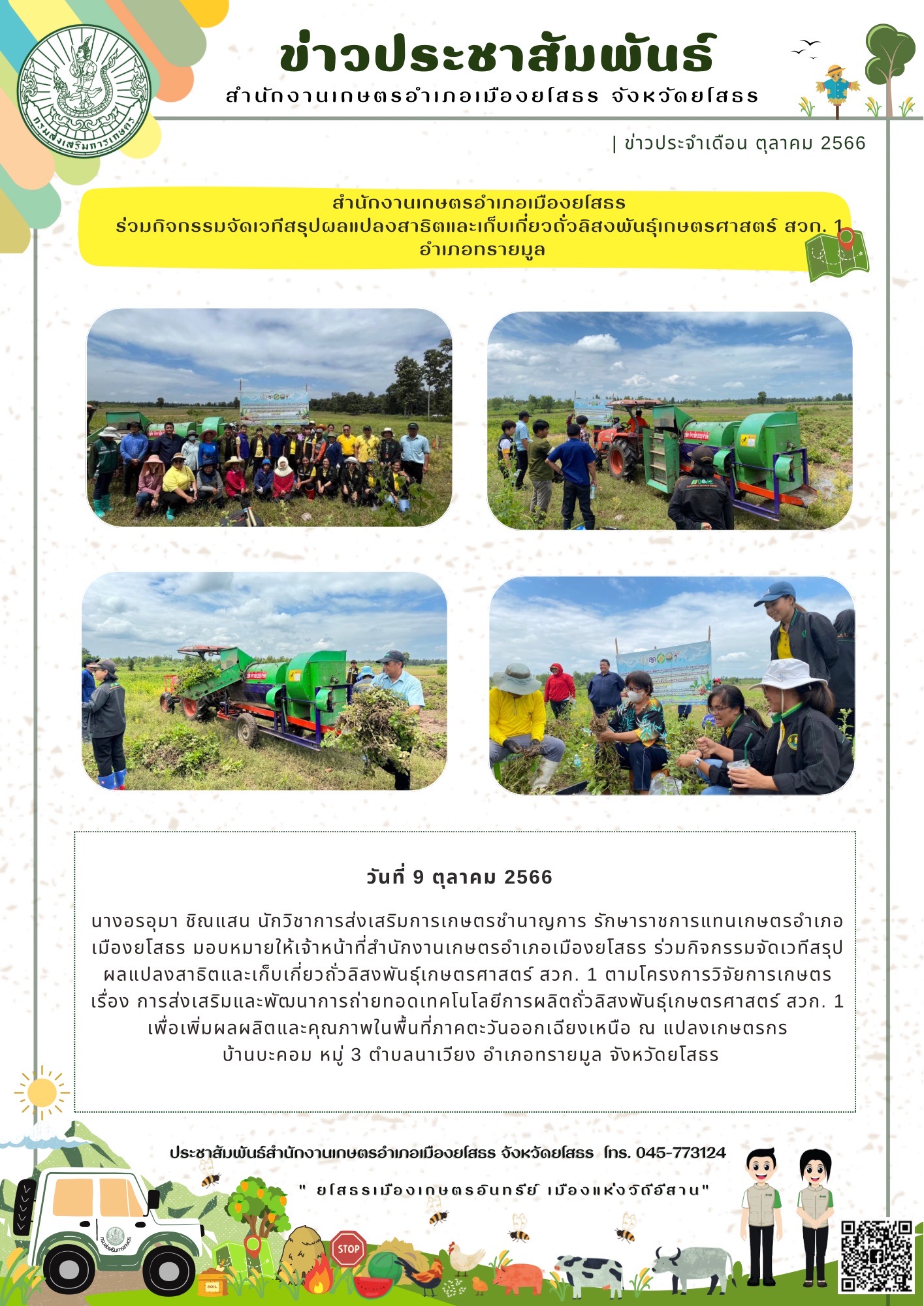 เกษตรอำเภอเมืองยโสธร ร่วมกิจกรรมจัดเวทีสรุปผลแปลงสาธิตและเก็บเกี่ยวถั่วลิสงพันธุ์เกษตรศาสตร์ สวก.1
