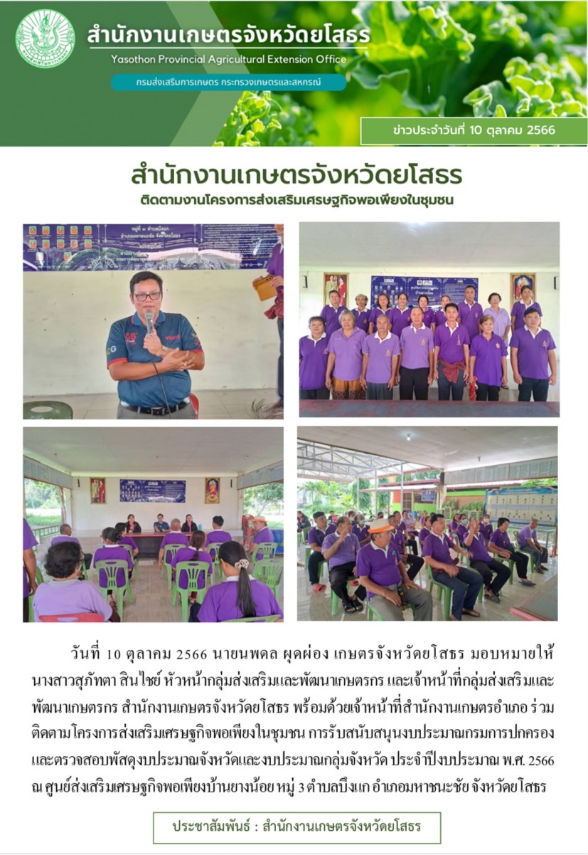 เกษตรจังหวัดยโสธร ติดตามงานโครงการส่งเสริมเศรษฐกิจพอเพียงในชุมชน