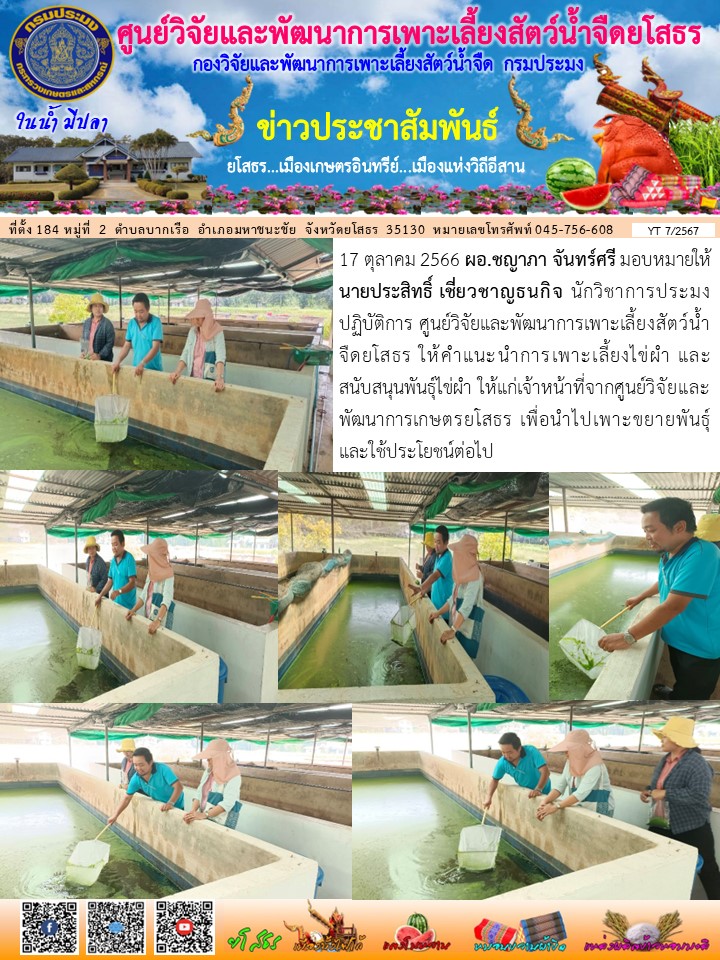 ผู้โพสต์ : [ศูนย์วิจัยและพัฒนาการเพาะเลี้ยงสัตว์น้ำจืดยโสธร] ทั่วไป