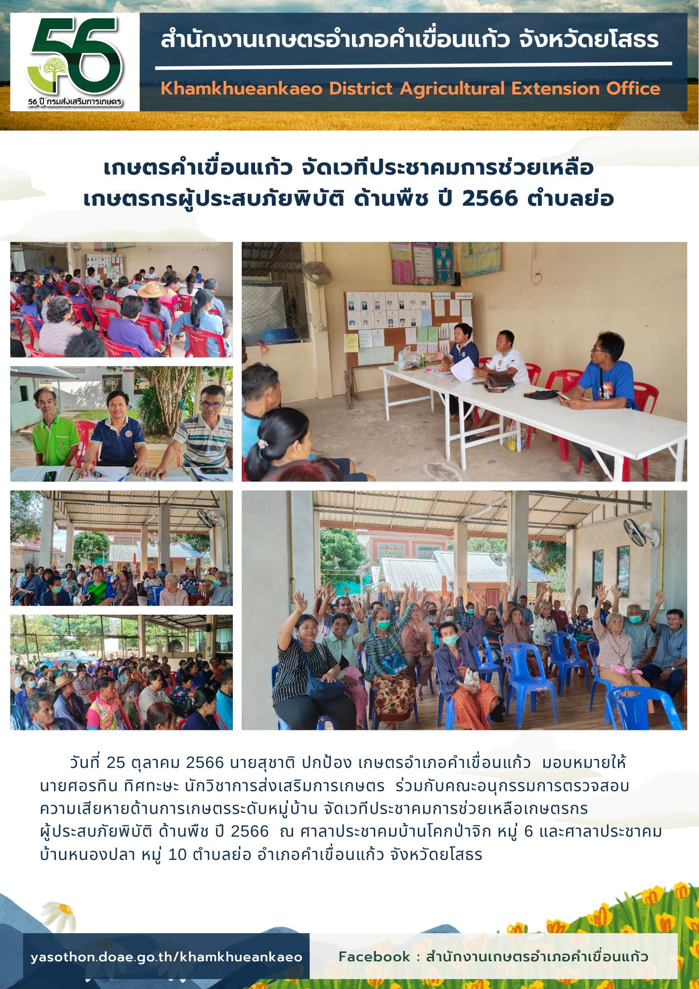 เกษตรอำเภอคำเขื่อนแก้ว จัดเวทีประชาคมการช่วยเหลือเกษตรกรผู้ประสบภัยพิบัติด้านพืช