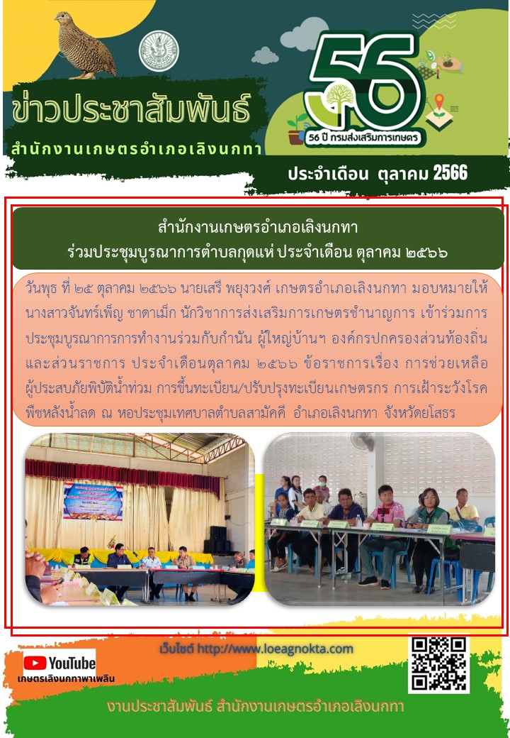เกษตรอำเภอเลิงนกทา ร่วมประชุมบูรณาการตำบลกุดแห่