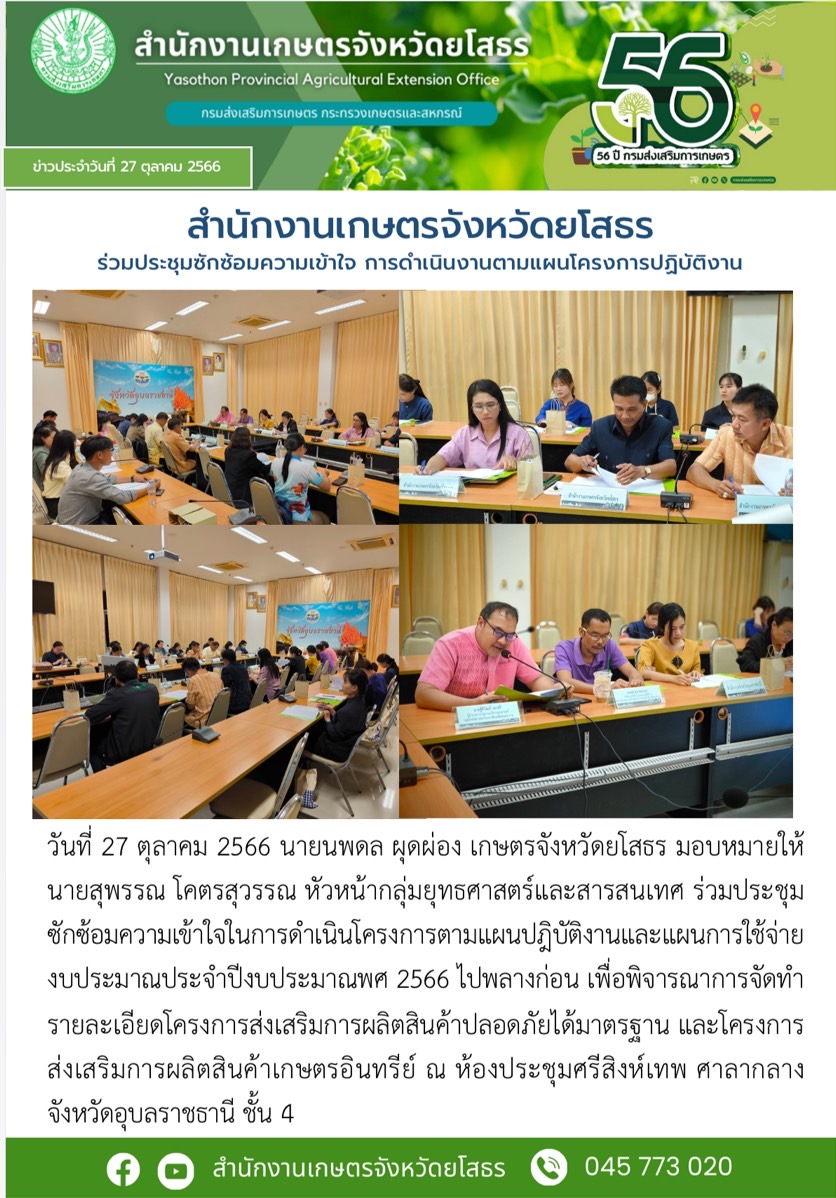 เกษตรจังหวัดยโสธร ร่วมประชุมซักซ้อมความเข้าใจ การดำเนินงานตามแผนโครงการปฏิบัติงาน