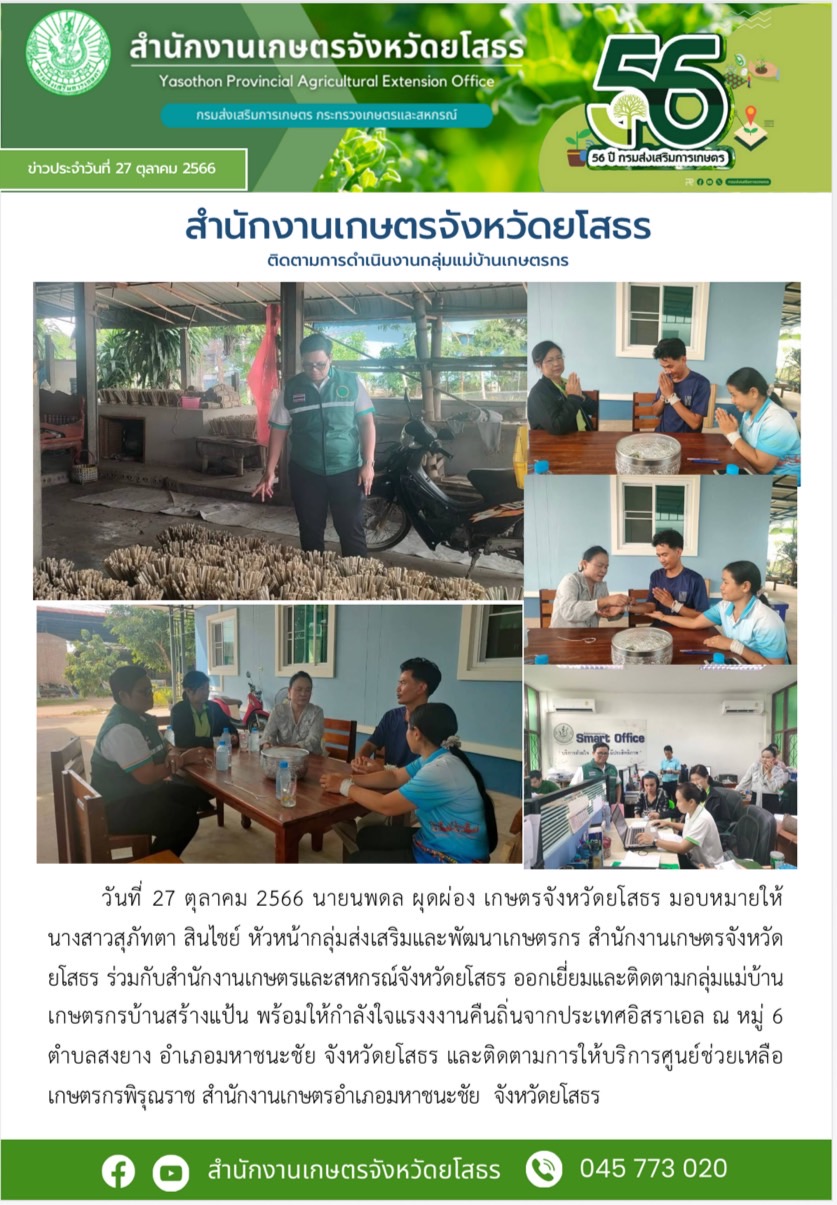 สำนักงานเกษตรจังหวัดยโสธร ติดตามการดำเนินงานกลุ่มแม่บ้านเกษตรกร