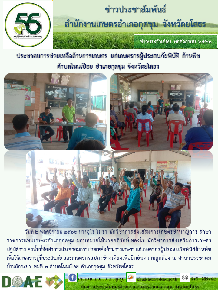 เกษตรอำเภอกุดชุม ประชาคมช่วยเหลือด้านการเกษตร แก่เกษตรกรผู้ประสบภัยพิบัติ
