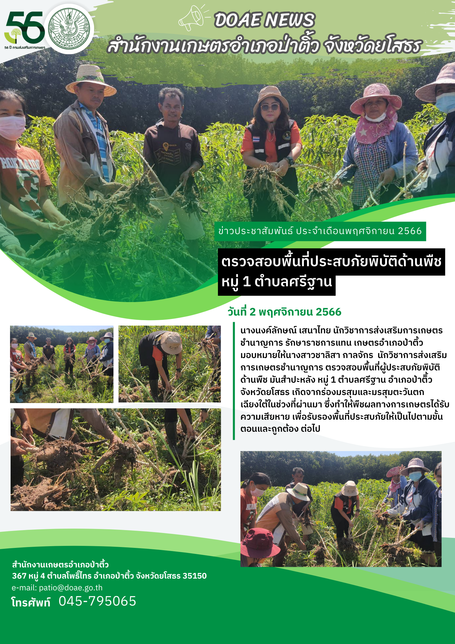 เกษตรอำเภอป่าติ้ว ตรวจสอบพื้นที่ประสบภัยพิบัติด้านพืช