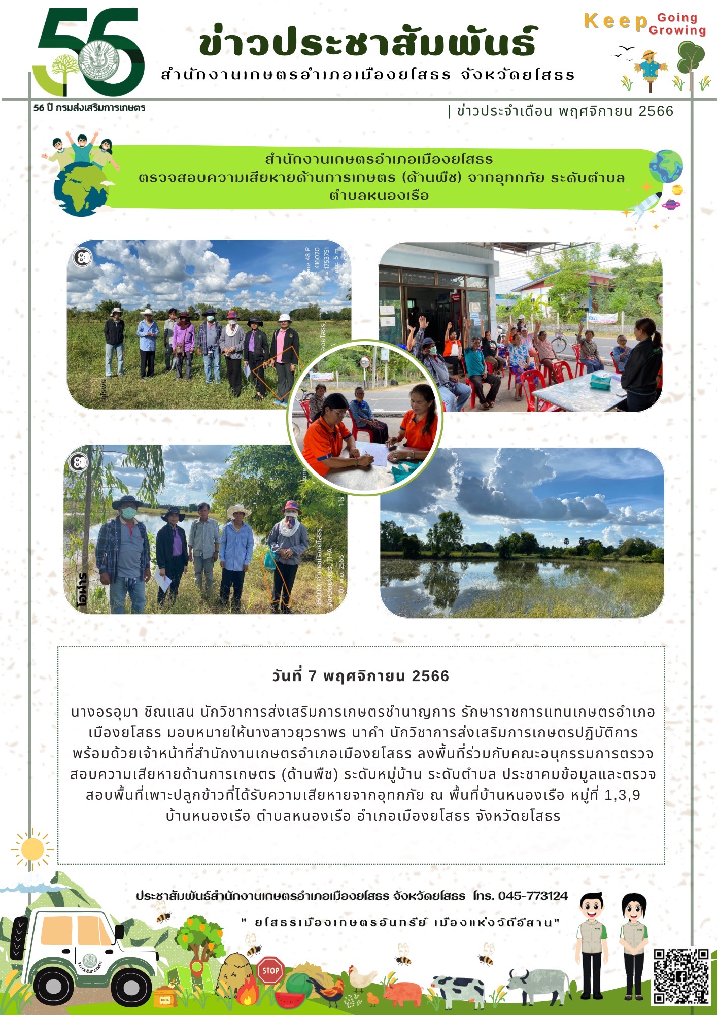 เกษตรอำเภอเมืองยโสธร ตรวจสอบความเสียหายด้านการเกษตร