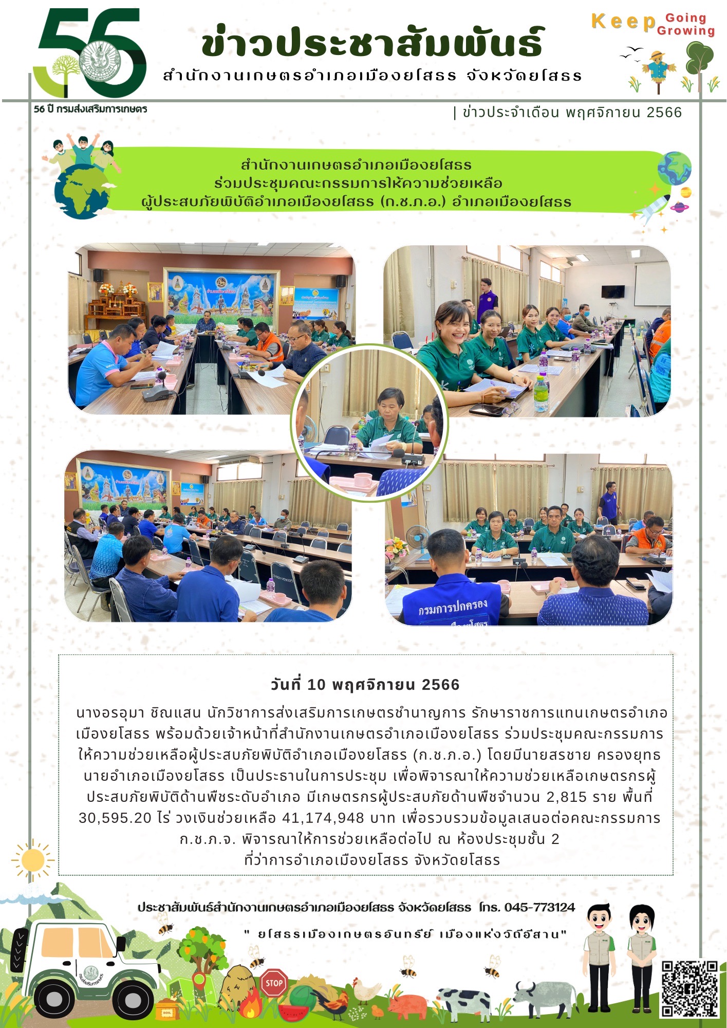 เกษตรอำเภอเมืองยโสธร ร่วมประชุมคณะกรรมการให้การช่วยเหลือผู้ประสบภัยพิบัติอำเภอเมืองยโสธร