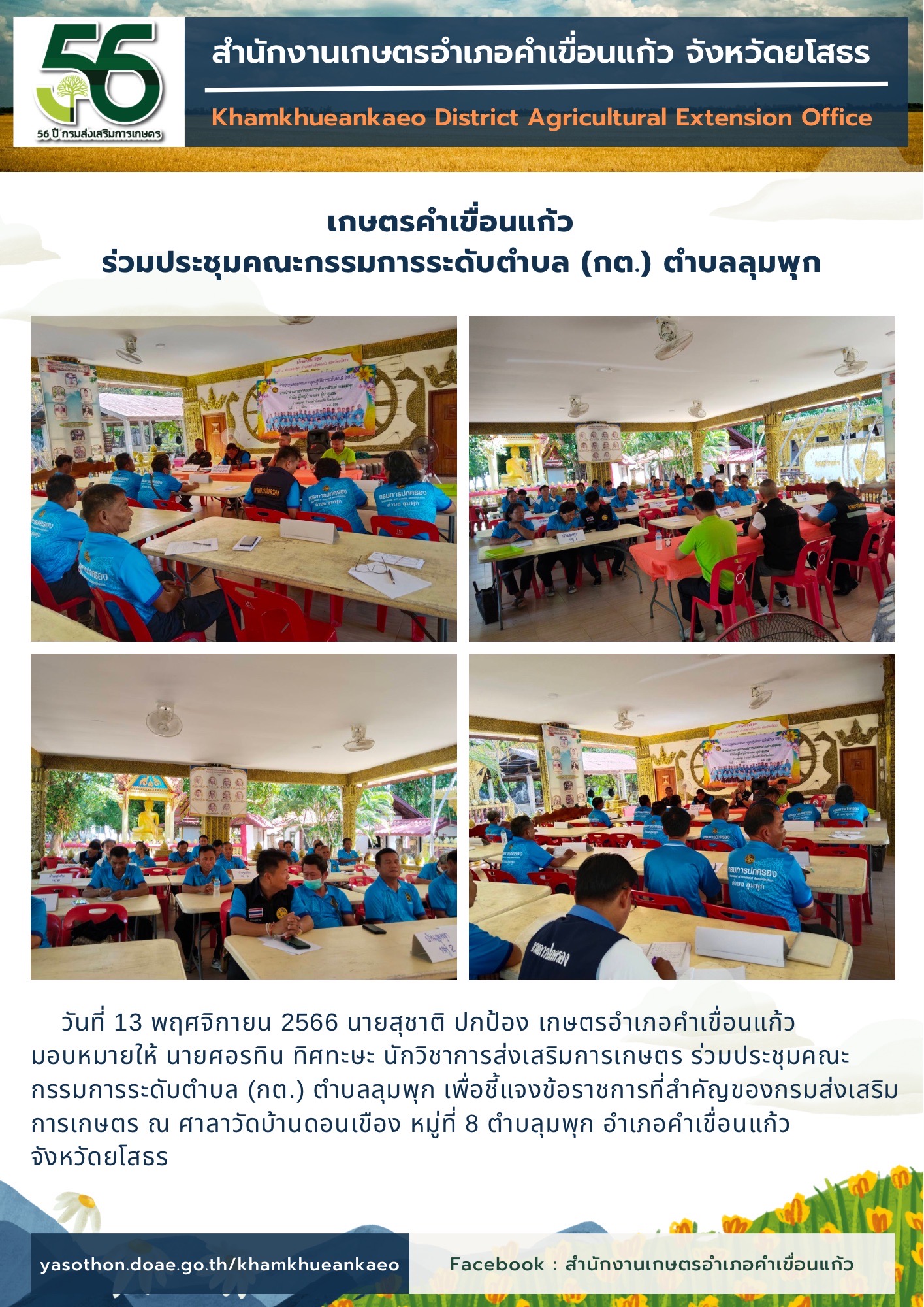 เกษตรอำเภอคำเขื่อนแก้ว ร่วมประชุมคณะกรรมการระดับตำบล