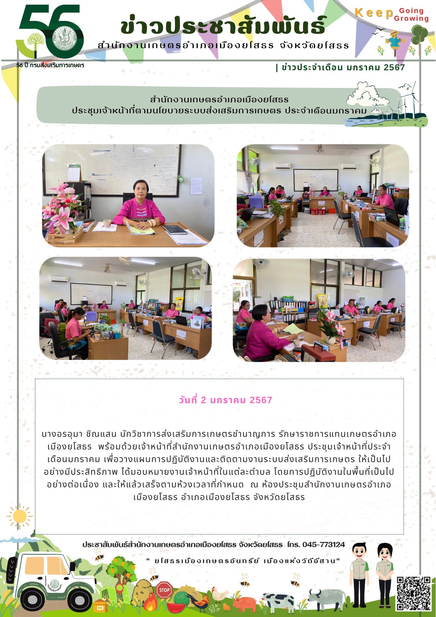 เกษตรอำเภอเมืองยโสธร ประชุมเจ้าหน้าที่ประจำเดือนมกราคม 2567