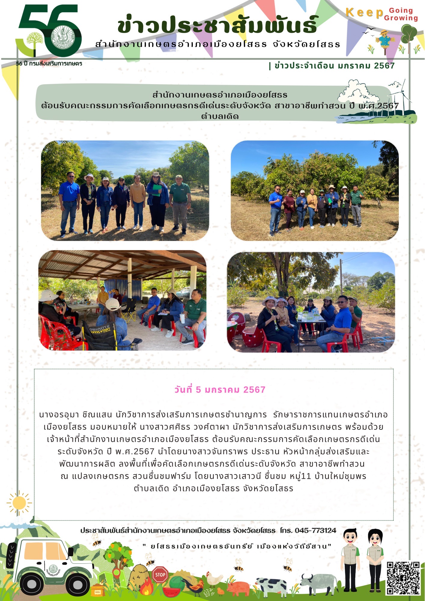 เกษตรอำเภอเมืองยโสธร ต้อนรับคณะกรรมการคัดเลือกเกษตรกรดีเด่นระดับจังหวัด
