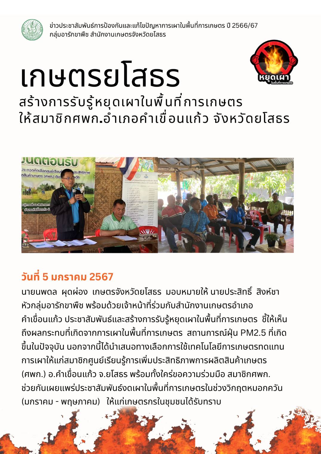 เกษตรยโสธร สร้างการรับรู้หยุดเผาในพื้นที่การเกษตร